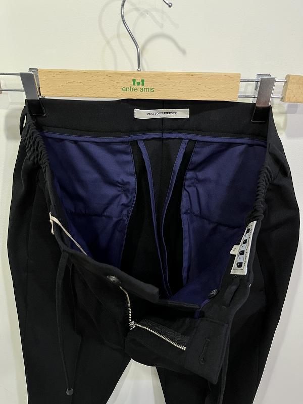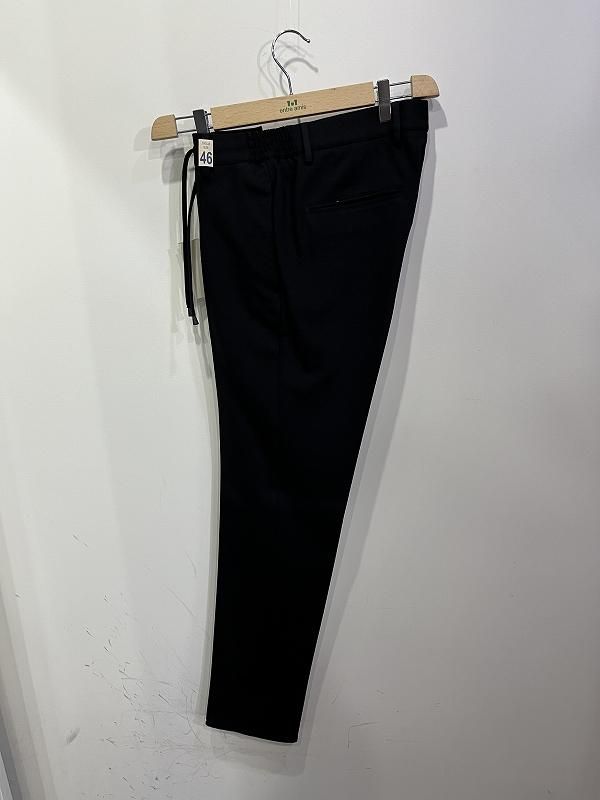 毎年人気の マサッチョジャージパンツ A5960という素材は秋冬の定番ジャージ素材になります。春夏に比べて張りがあり少し固めで厚みも若干あります。ジャージパンツでもスラックスに見間違うくらいに綺麗なシルエットで ドローコードは中に落とせばベルト着用も可能。ウエストシャーリングもリラックスして着用できるので嬉しいところです。こちらはセンタークリース付きのマサッチョです。無いタイプもフロントシルエットがすっきりして サイドシルエットもテーパードが非常に綺麗で ジャケットスタイルにもコーディネイトできる逸品です 【秋冬商品】