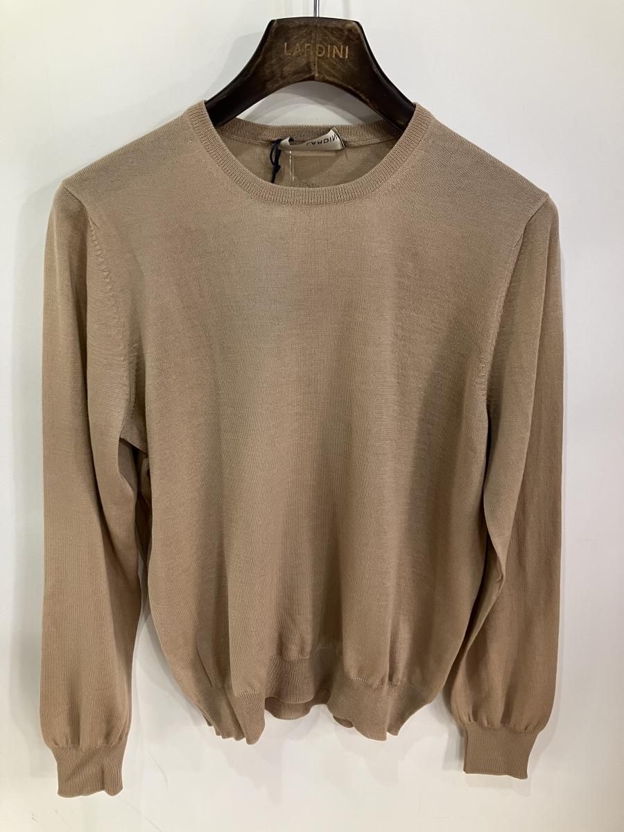 ラルディーニのエンボスマークが背中にあしらわれた、ハイゲージのクルーネックニット。ラルディーニらしく、着用したスタイルがとてもかっこいいです。まず体が非常に綺麗に見えます。肩幅は若干狭めですが腕回りはぜんぜん窮屈ではなく、腕は細目、とてもスタイリッシュに着用いただけます。体を綺麗に見せることができるハイゲージニットです。もちろんジャケットのインでも一枚でも着ていただけます。またウオッシャブルなニットなのが日常使いに最適です。 【】