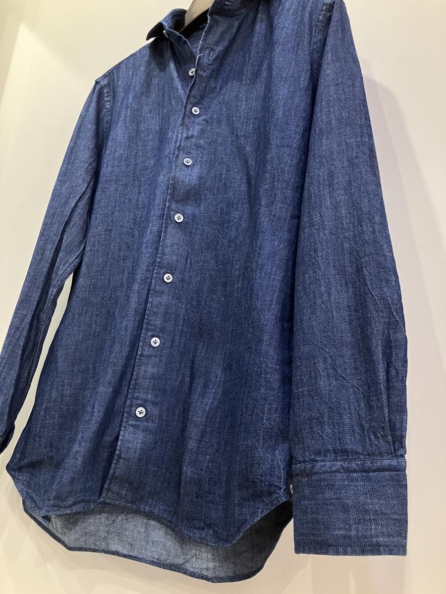 ラルディーニの定番パターンのカッタウェイ ワンウオッシュデニムシャツ。ウエストにはダーツが入りシェイプされています。第二ボタンを開けると、花柄刺繍(ブートニエール)が顔をのぞかせます。色気のあるデニムシャツになっています。ワンウオッシュなので洗濯は単品で色落ちがなくなるまで洗ってください。 【】