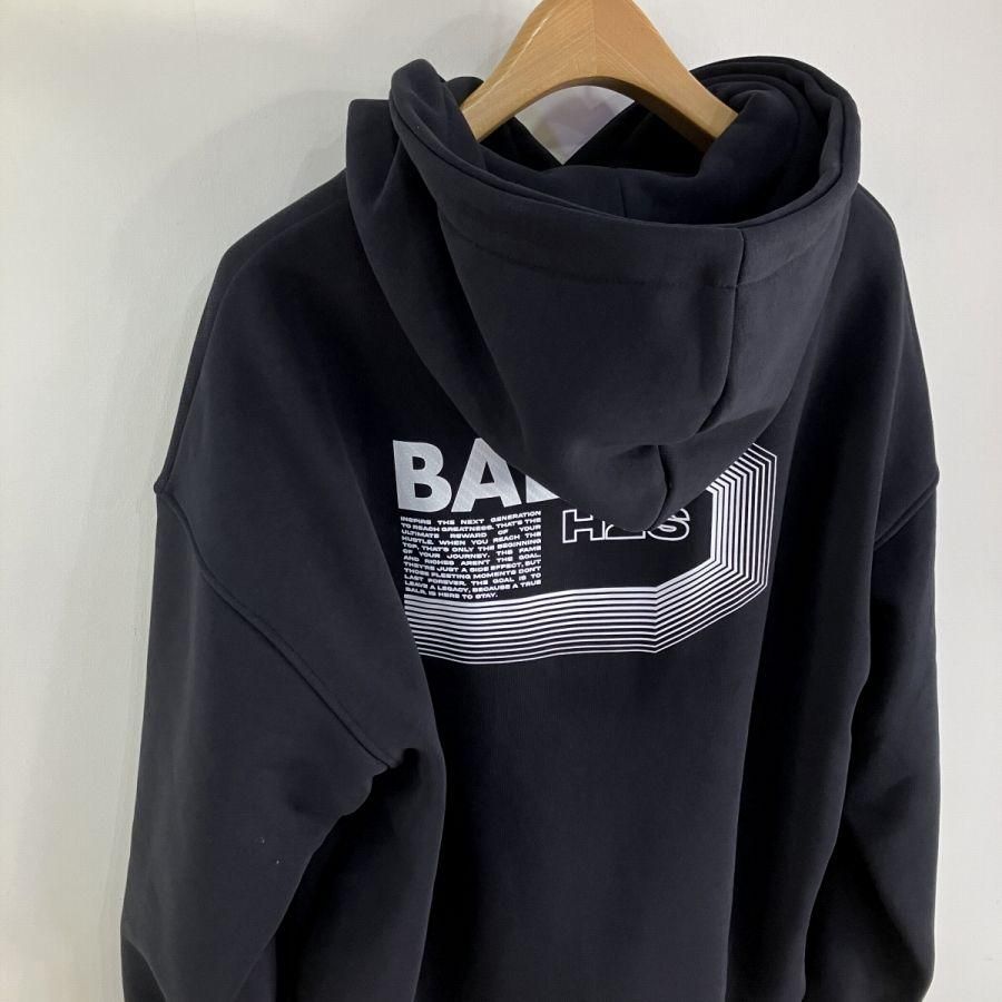 ボーラーの裏毛のパーカー。ポリエステルが混紡されたコットンは表面に光沢感があり、高級感があります。特に袖や裾のリブはその高級感のある素材で着用時とても綺麗にみえます。ご自宅での水洗いはもちろん可能ですが、洗った後の皴はまったくでないと思われます。とにかくワンランク上の素材感でとてもリッチな感じに着用いただけるカットソーに仕上がっています。胸の六角形のマークもクリアでスタイリッシュです。さらに裾にメタルのBALRのマークもついています。パーカーの背にはこれもしっかりしたバックプリントが施されています。それもフードの合間から見え隠れするのがまたとてもかっこいいですね 【】