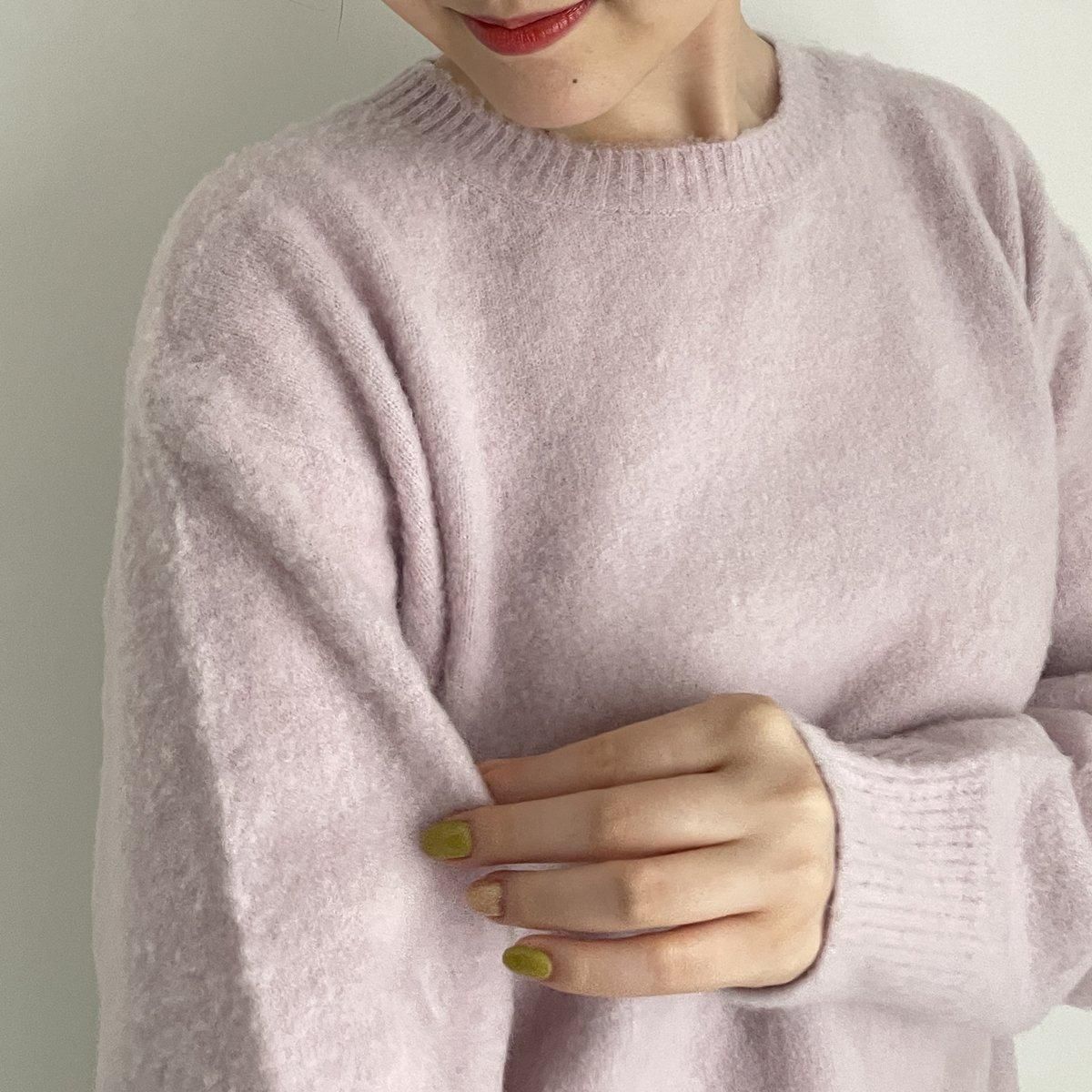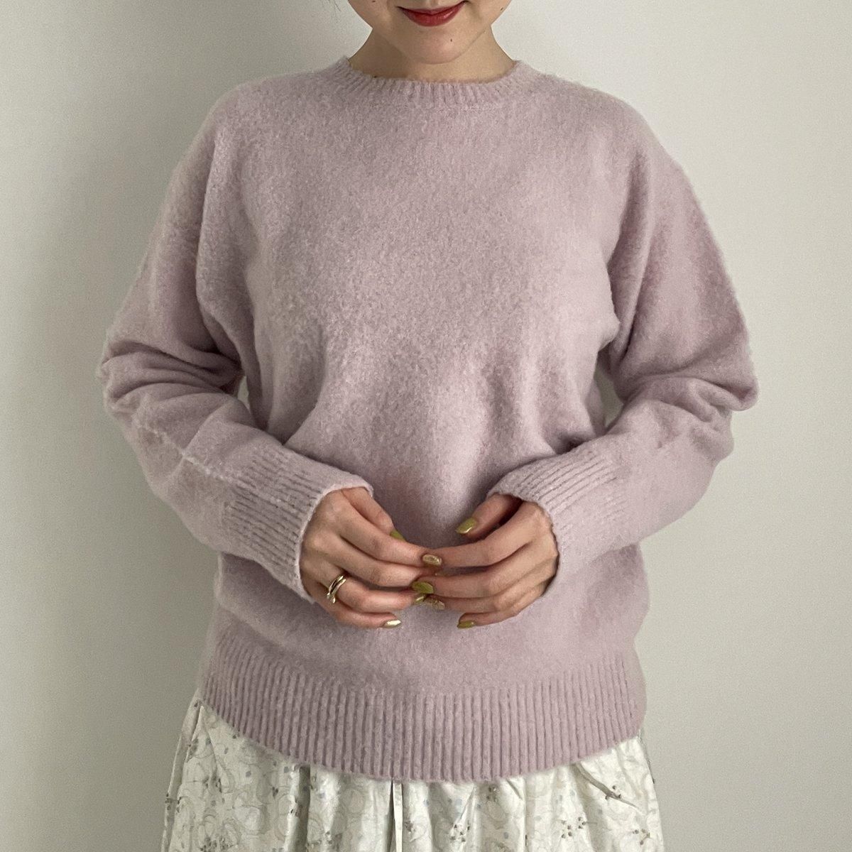 こちらのニットは表面を起毛させたふわふわ感のあるブラッシュドニットです。