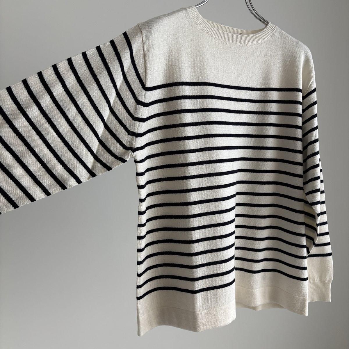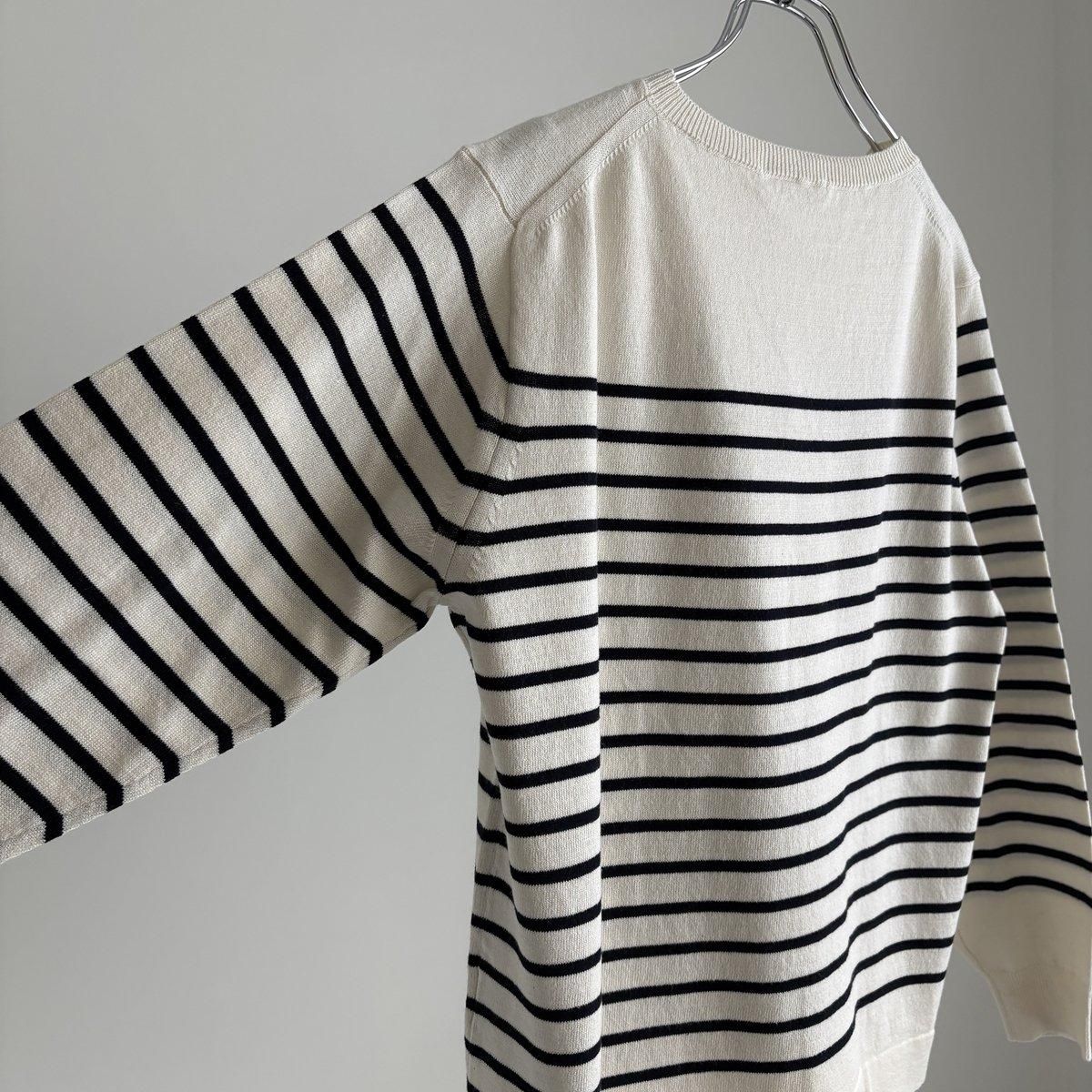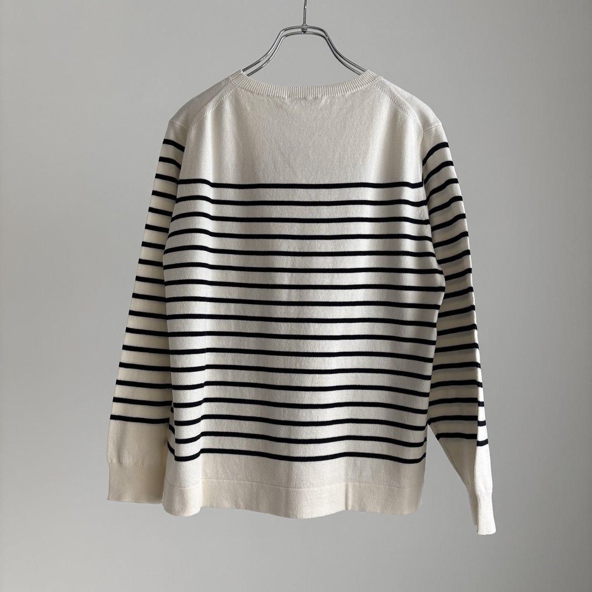 ANSPINNEN Bulky Cotton Silk Boatneck Border Sweater/ANS-UK0073*KN#IT