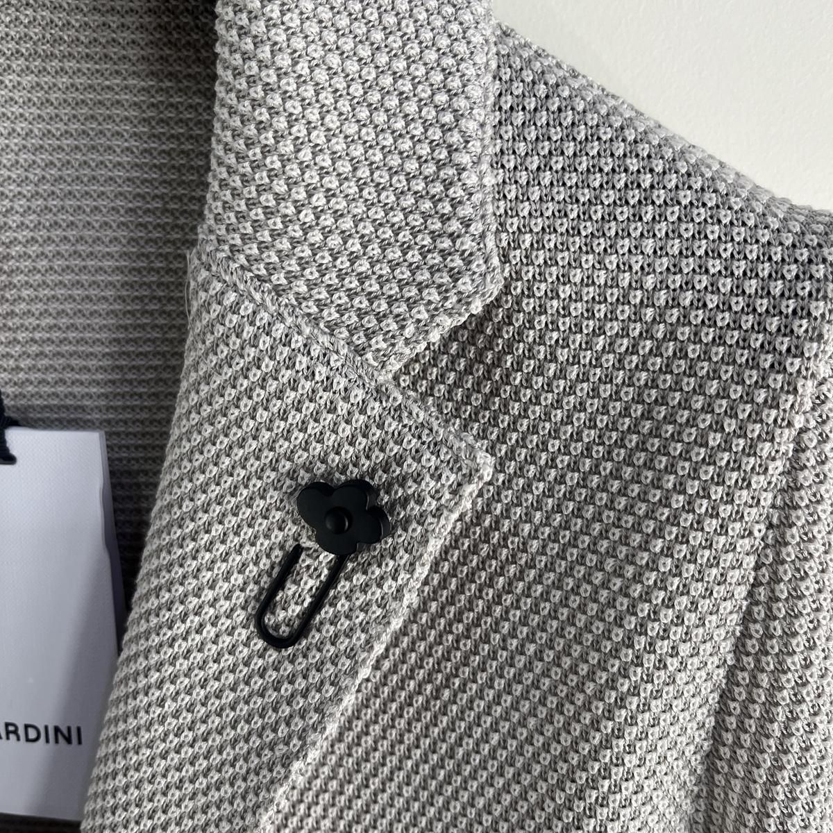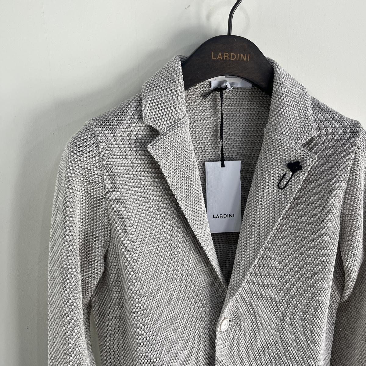 ラルディーニの数あるジャケットモデルの中でも一番人気のモデルがこちらのニットジャケットです。他のブランドのニットジャケットはかなりボリュームがでて着ぶくれしてしまうようなニットジャケットも多いのですが、ラルディーニの物は薄手でジャケットのようにしっかり着用できるシルエットになっています。素材のセレクトはもちろん裏の作りも凹凸の無いとても綺麗な縫製になっています。とにかく着用したシルエットがとても綺麗なのが特徴です。サイドベンツもニットジャケットについているとバックシルエットがとても綺麗です。1着持っておけば非常に多くのシーンで使えるニットジャケット。素材も春らしいコットン素材でフレスコのような凹凸のあるニット素材。清涼感があって通気性がいいので真夏まで着用いただけます。