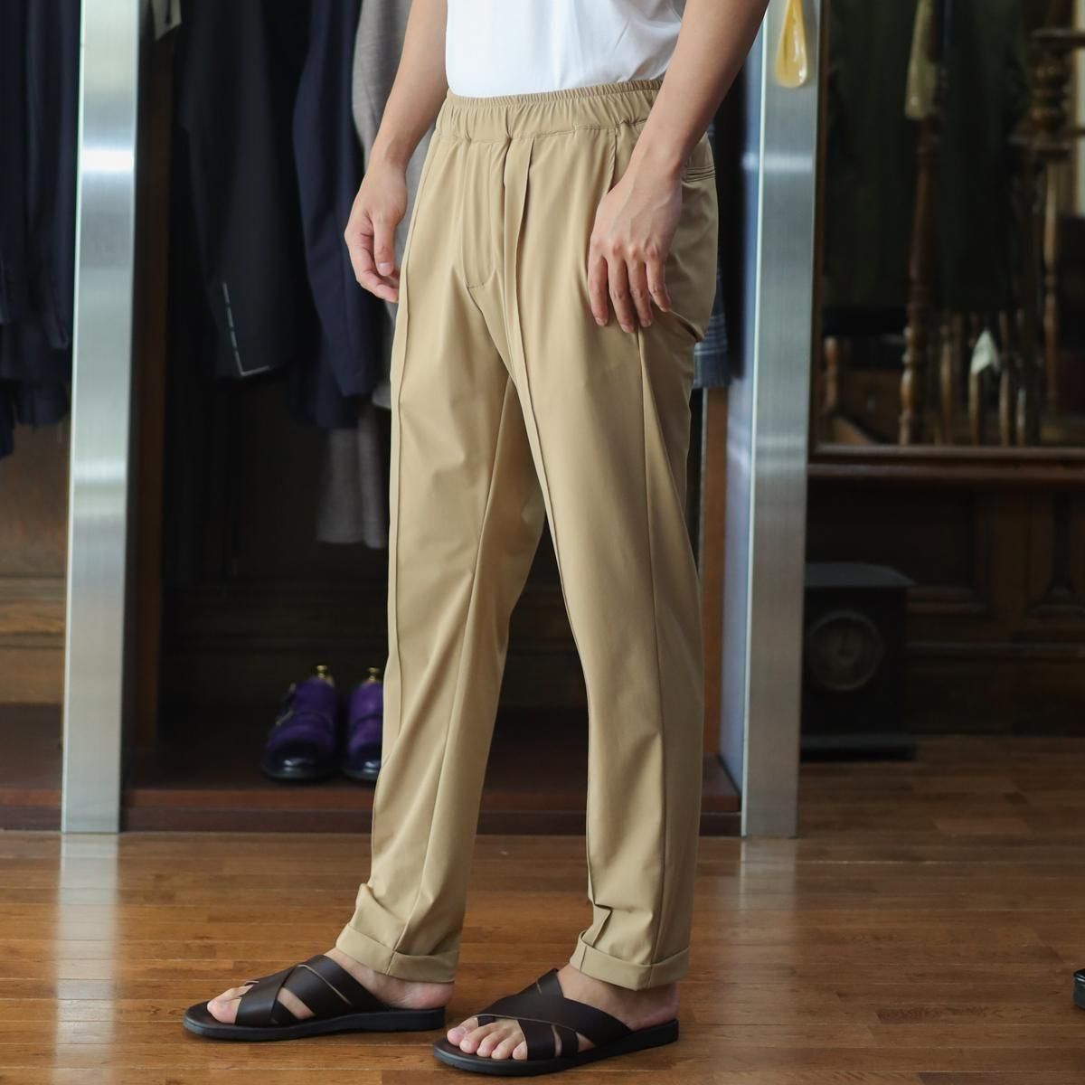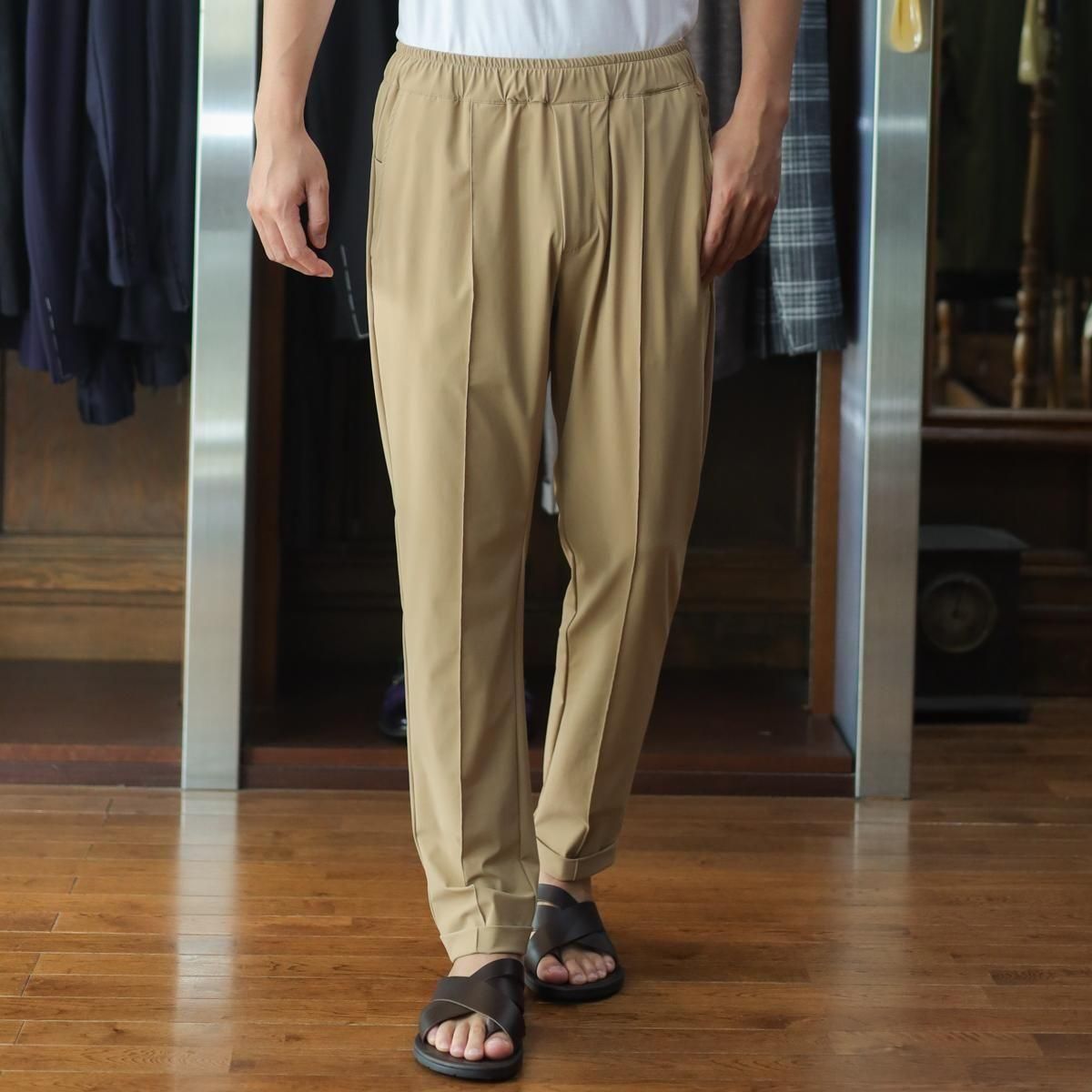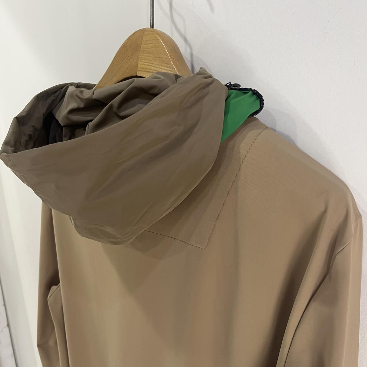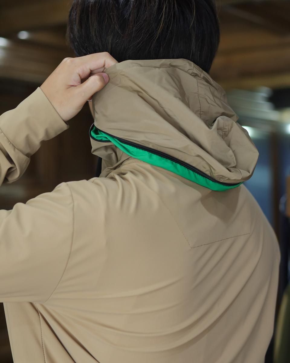 毎回好評をいただいているハイパーストレッチのパーカーセットアップです。カルビコ社製の29%のポリウレタンの着心地は最高。綺麗目にスポーティーにタウンユースでご利用いただいても、問題なくお召しいただけます。この一枚で中をシンプルなTシャツでデニムにも合わせますし、ゴルフなどのスポーツシーンでも大活躍しそうですね。とにかく伸び感が最高です。キックバック性能も高いので膝や肘がでたりすることはありません。非常に薄いので夏まで着用いただけます。オールシーズン通してご利用頂ける素材。色はキャメルで黒ばかりお持ちの方にはとても新鮮です。