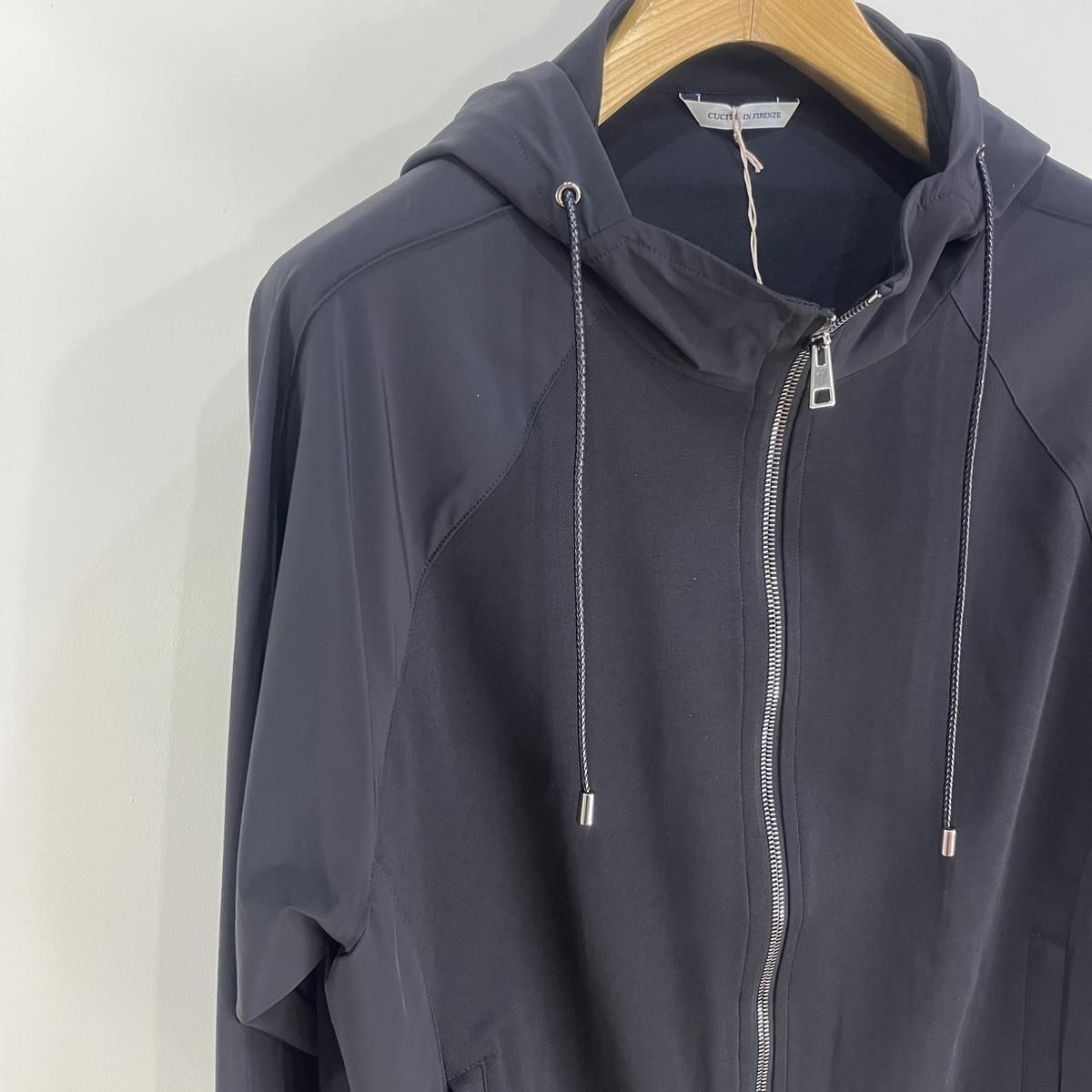 ジャブスのパーカーPUCCIのNEWモデル PUCCI-PK です。袖はハイパーストレッチナイロン。ボディーと背中・フード裏側はソフト天竺ジャージのハイブリッドタイプになっています。PUCCIとの違いは、2種類の生地を切り替えている点に加え袖はラグラン仕様になり肩から袖口まで「masaccio」の特徴でもある「永久クリース」が袖にはいっています。袖口や裾はリブから共地のゴムになり脇ポケットはスポーツ時にモノを落とさないようにファスナーポケットに変更しています。フードヒモも「masaccio GOLD」に使われる合皮の編みヒモにガンメタのストッパーという豪華仕様。家庭洗濯可能。単品のパーカーとしても凄く使えると思いますが別売りの「masaccio GYM」とセットアップにもなります。使い勝手のいいライトなアウターです。
