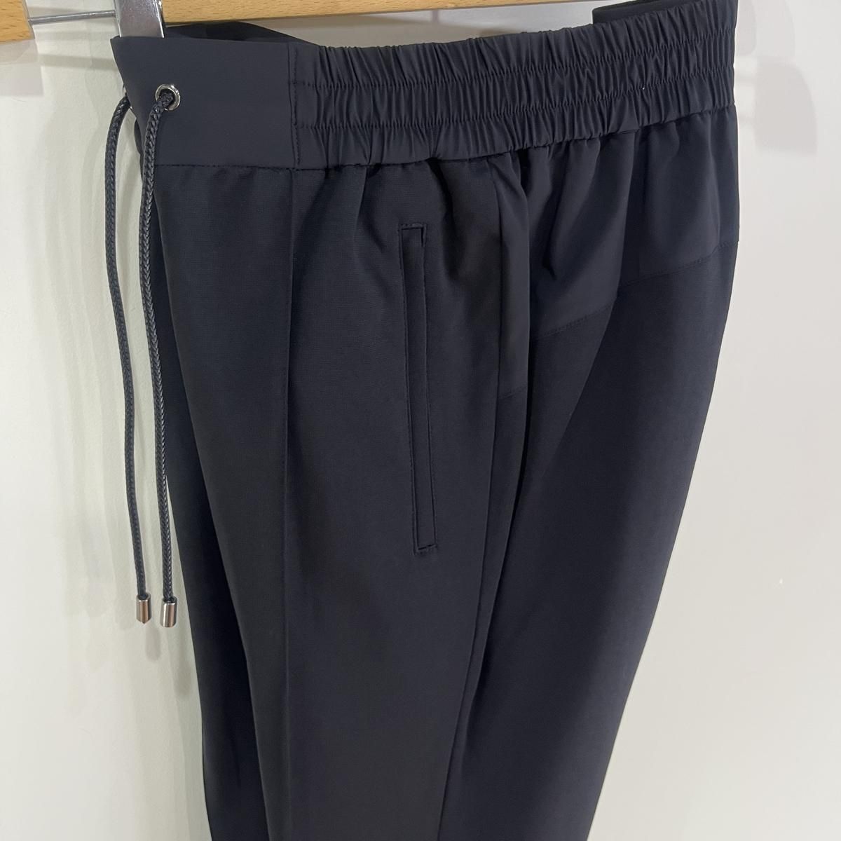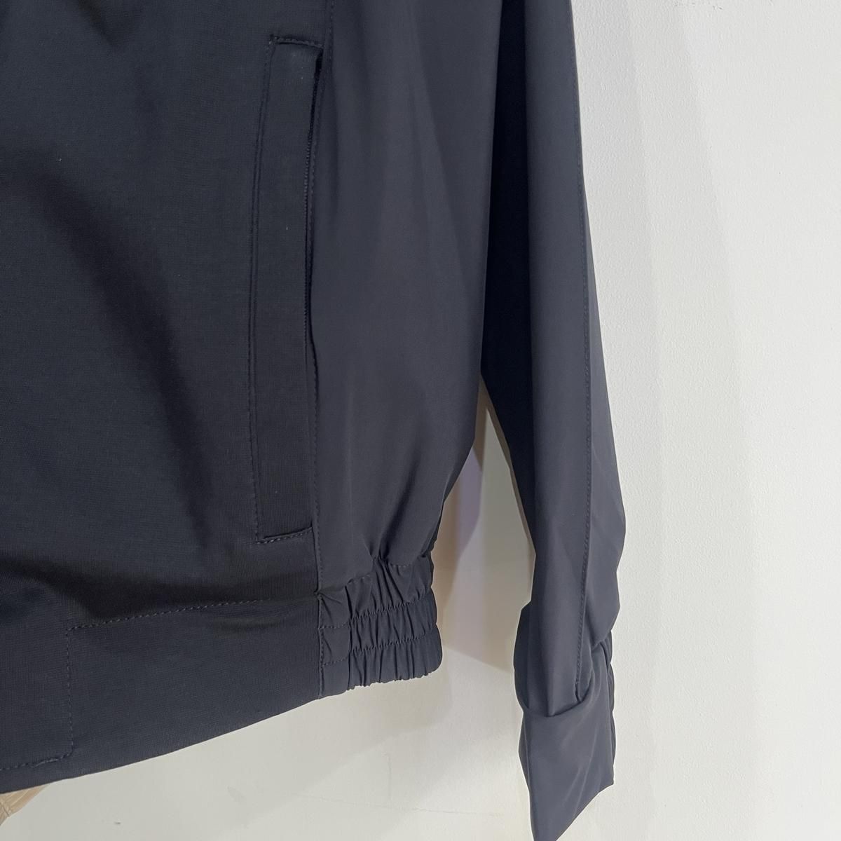袖はハイパーストレッチナイロン・ボディーと背中・フード裏側はソフト天竺のジャージ素材のハイブリッドタイプに。PUCCIとの違いは2種類の生地を切り替えている点に加え袖はラグラン仕様になり肩から袖口まで「永久クリース」が袖にはいっています。脇ポケットはスポーツ時にモノを落とさないようにファスナーポケットに変更。家庭洗濯可能。パンツはマサッチョに比べサイドのゴムの量を増やし、ほぼ総ゴムなので楽さが増してます。脇ポケットはファスナー、後ポケットはボタン仕様にして実際スポーツをする場面でもポケットの中のものを落とさないように配慮されています。