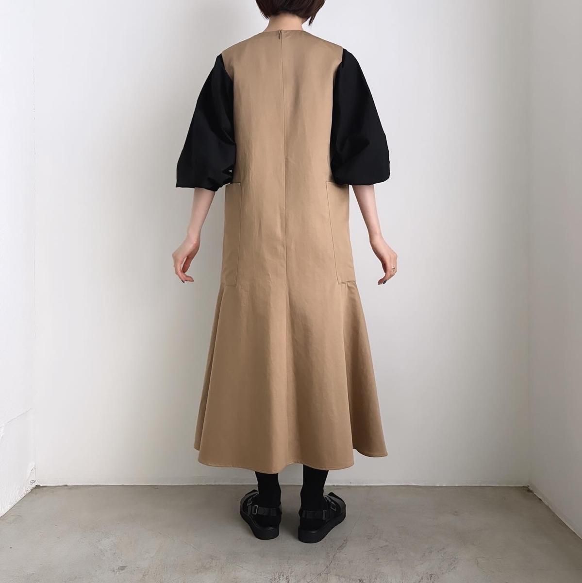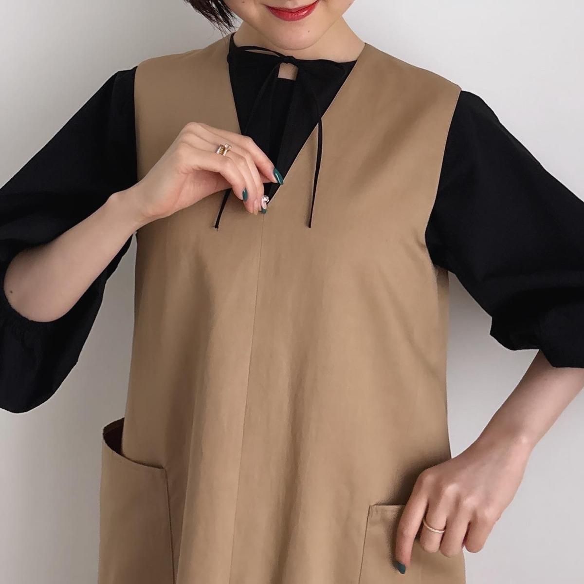 スリーブレスということで、一枚での着用はもちろんなのですがインナーの合わせで様々な表情をお楽しみいただけます。