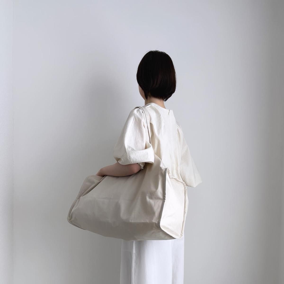 TENNEさんではお馴染みのトレンチコートで使われている、水を弾いて、風を防いで、こもる熱は逃がしてくれるというVentile Cottonで作られたバックです。