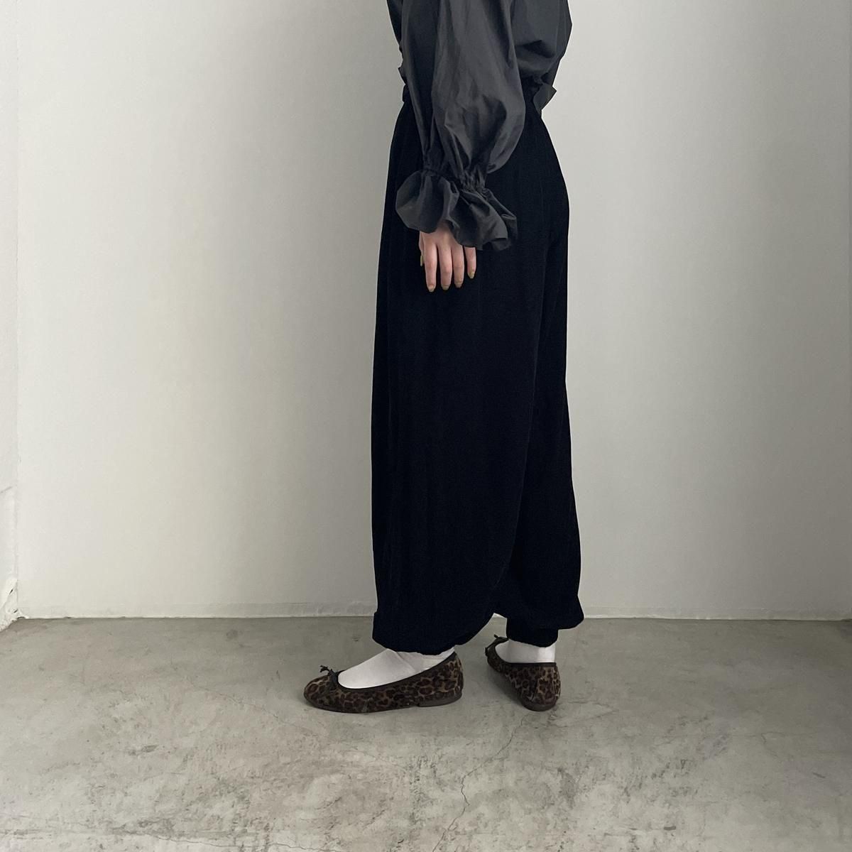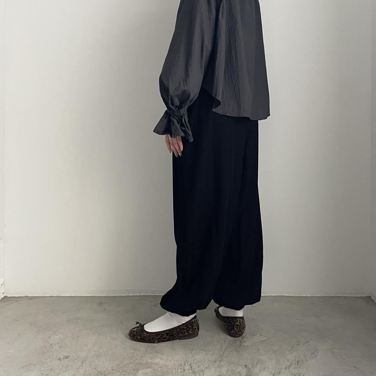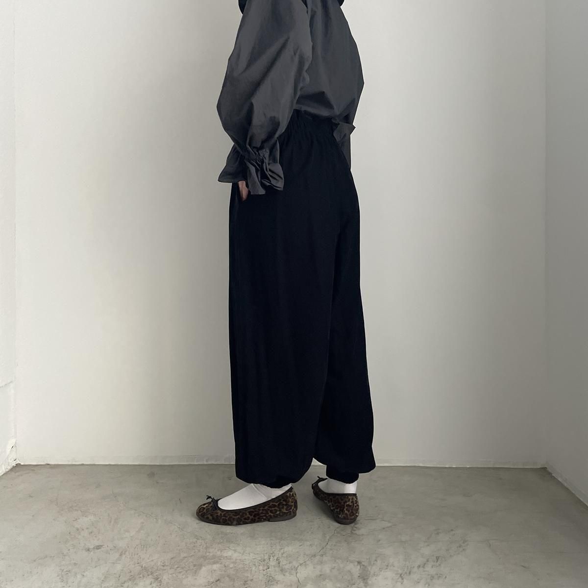 FREE-ウエスト 66cm〜(ギャザーゴムのつくり)-ヒップ 142cm-股上41cm-股下 62cm-わたり cm-裾幅 12.5cm〜(ゴムのおつくり)