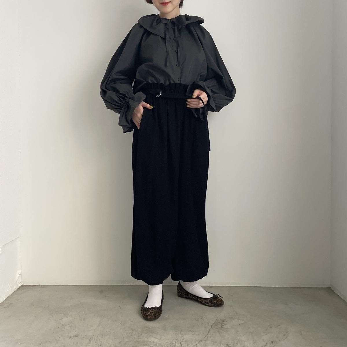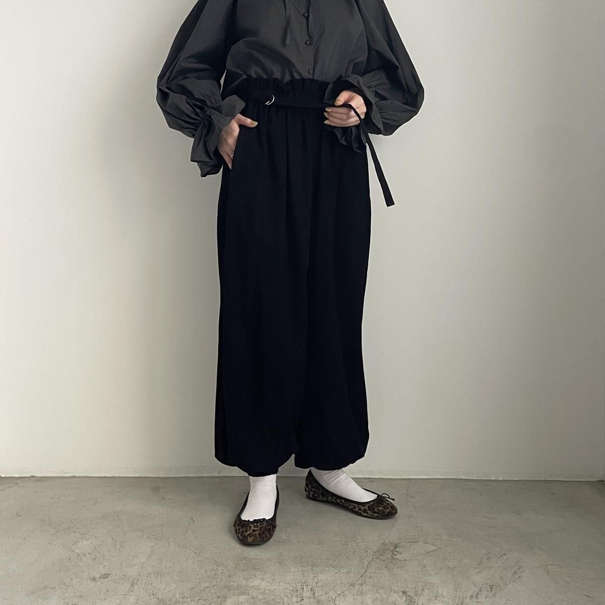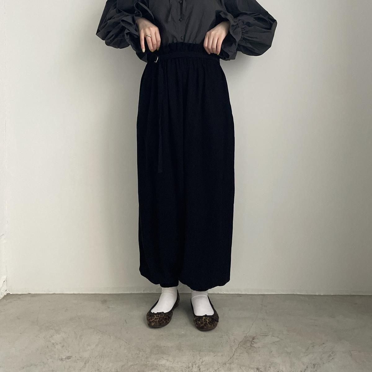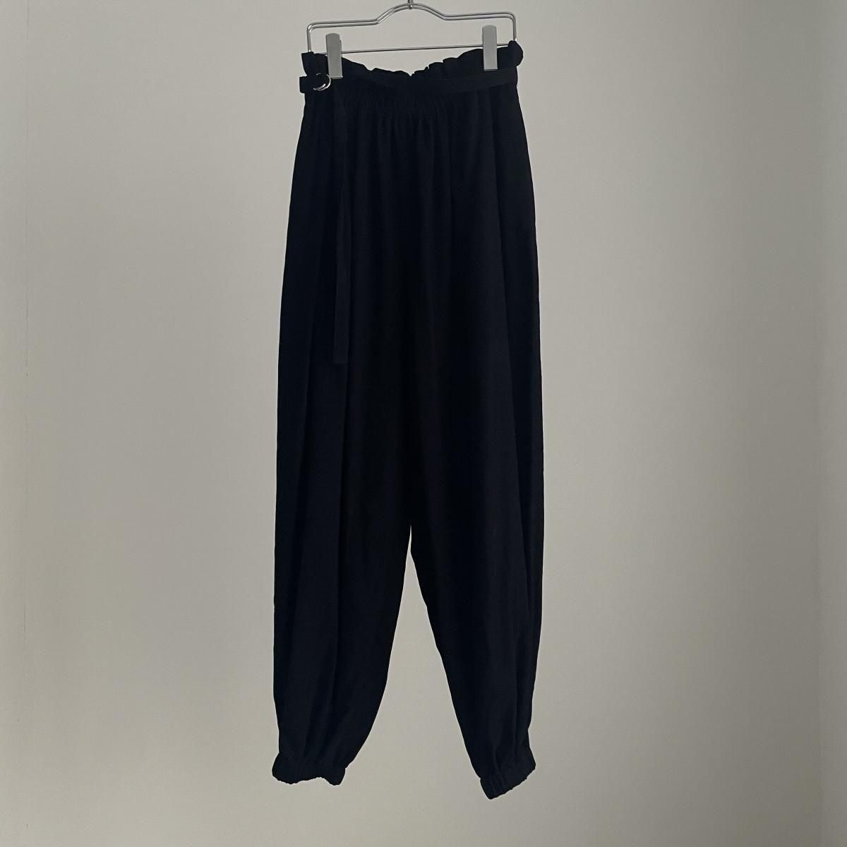 FREE-ウエスト 66cm〜(ギャザーゴムのつくり)-ヒップ 142cm-股上41cm-股下 62cm-わたり cm-裾幅 12.5cm〜(ゴムのおつくり)