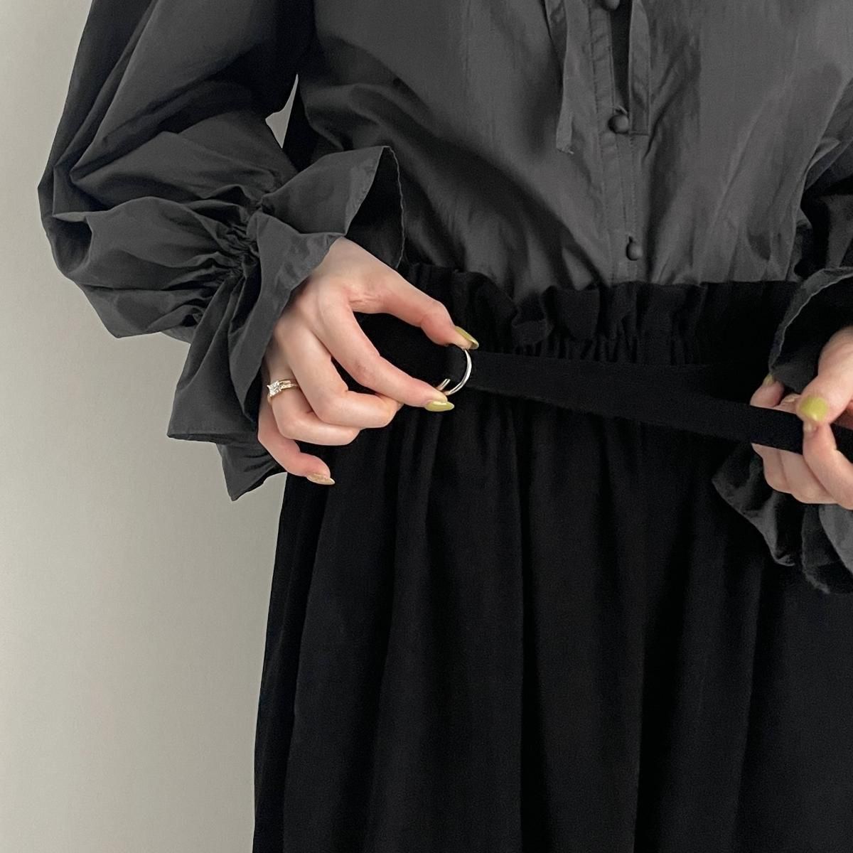 トップスをインしてひらひらのギャザーを見せる着こなしも素敵です。
