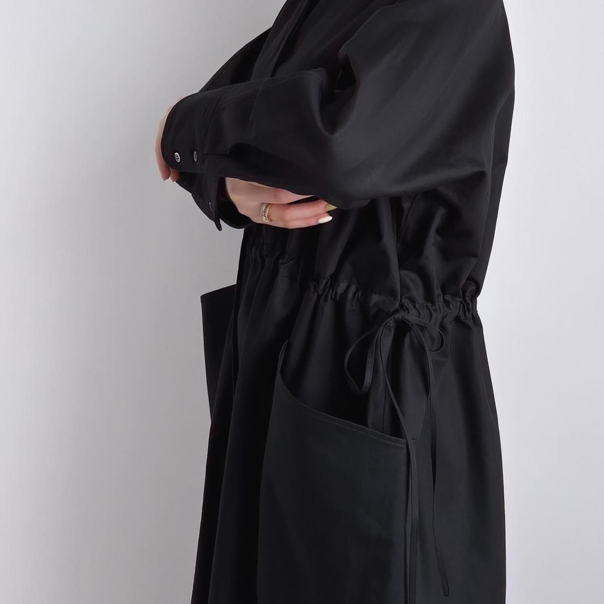 両サイドの絞り具合でシルエットに変化をつけることができ、裾幅は少しすぼまっているので、ウエストを絞った際により立体感のあるシルエットがうまれます。