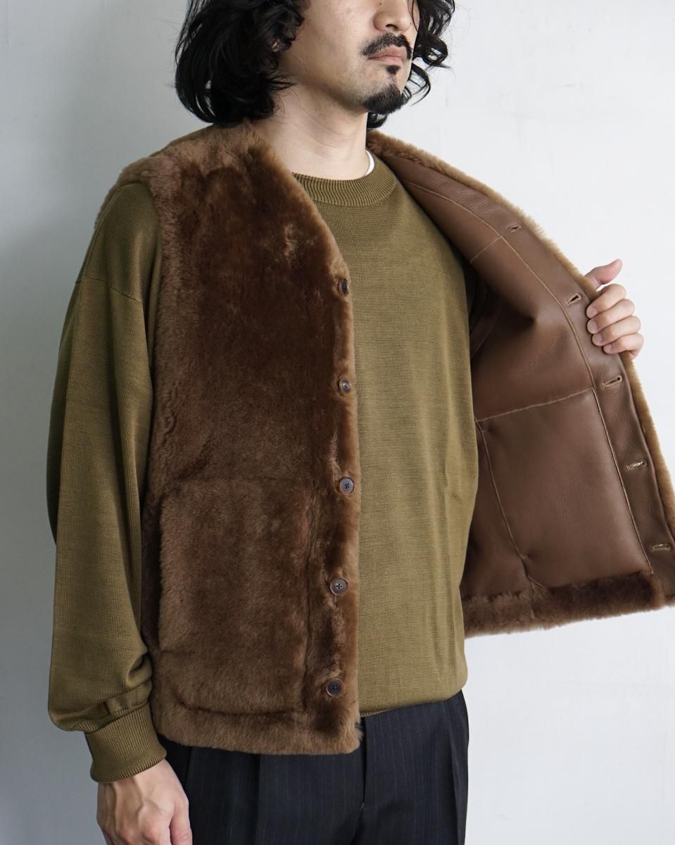 25AW AURALEE STRAIGHT MERINO MOUTON FUR VEST / A25AV02MM*LE#GH