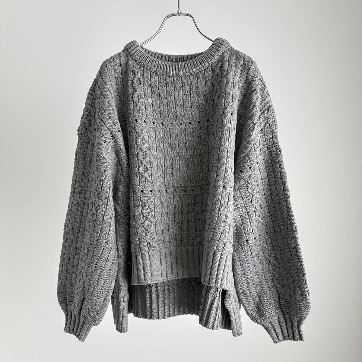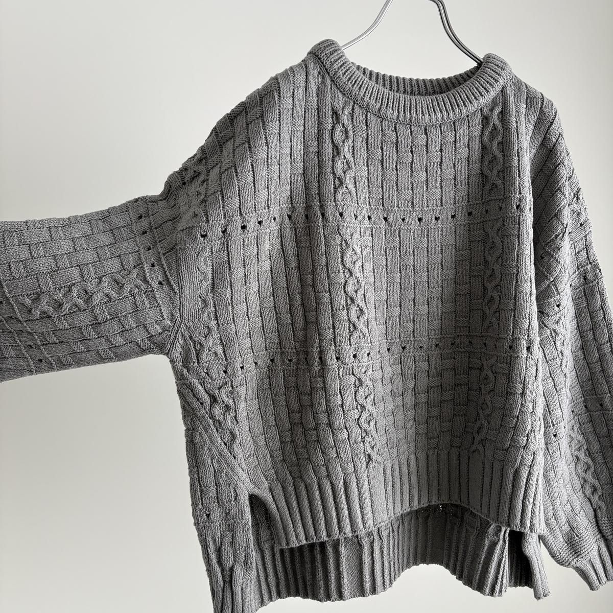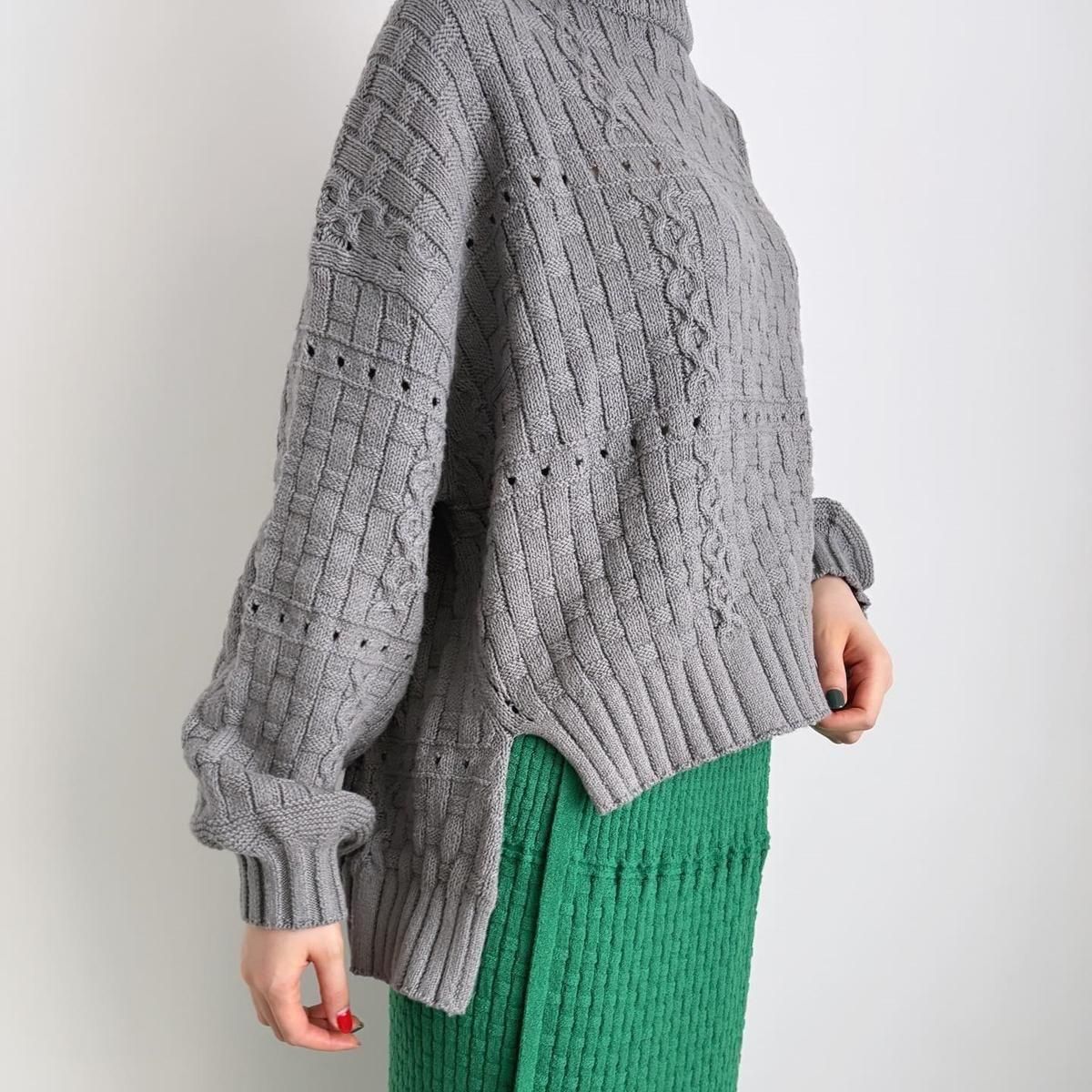 裾のシルエットがきれいに仕上がるように、脇線を前にもってきて前後差のある着丈にしあげれています。フロントの丈感がすっきりとしているので、小柄な方もバランス良く着られニットです。