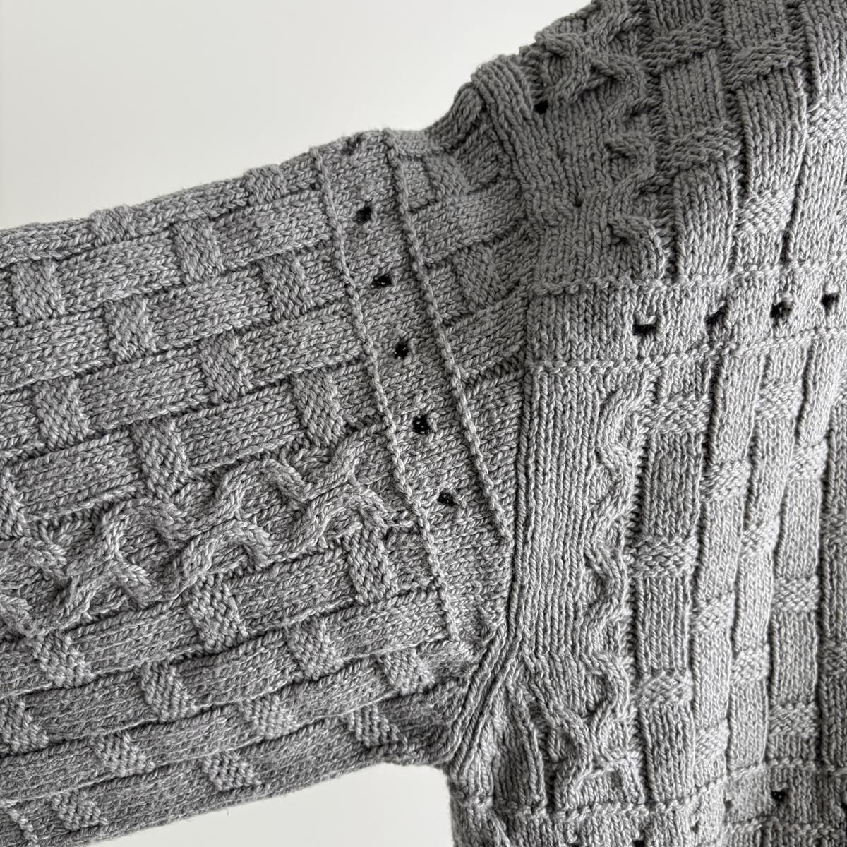 ひと目見てわかるこだわりたっぷりの網目模様はなかなか他では得られない、凝ったデザインのひとつではないでしょうか。袖幅をたっぷり持たせたパターンで、着用するとお袖がふっくらとします。手首でしっかりととまるので小柄な方も安心してふっくらとしたディテールをお楽しみいただでけます。
