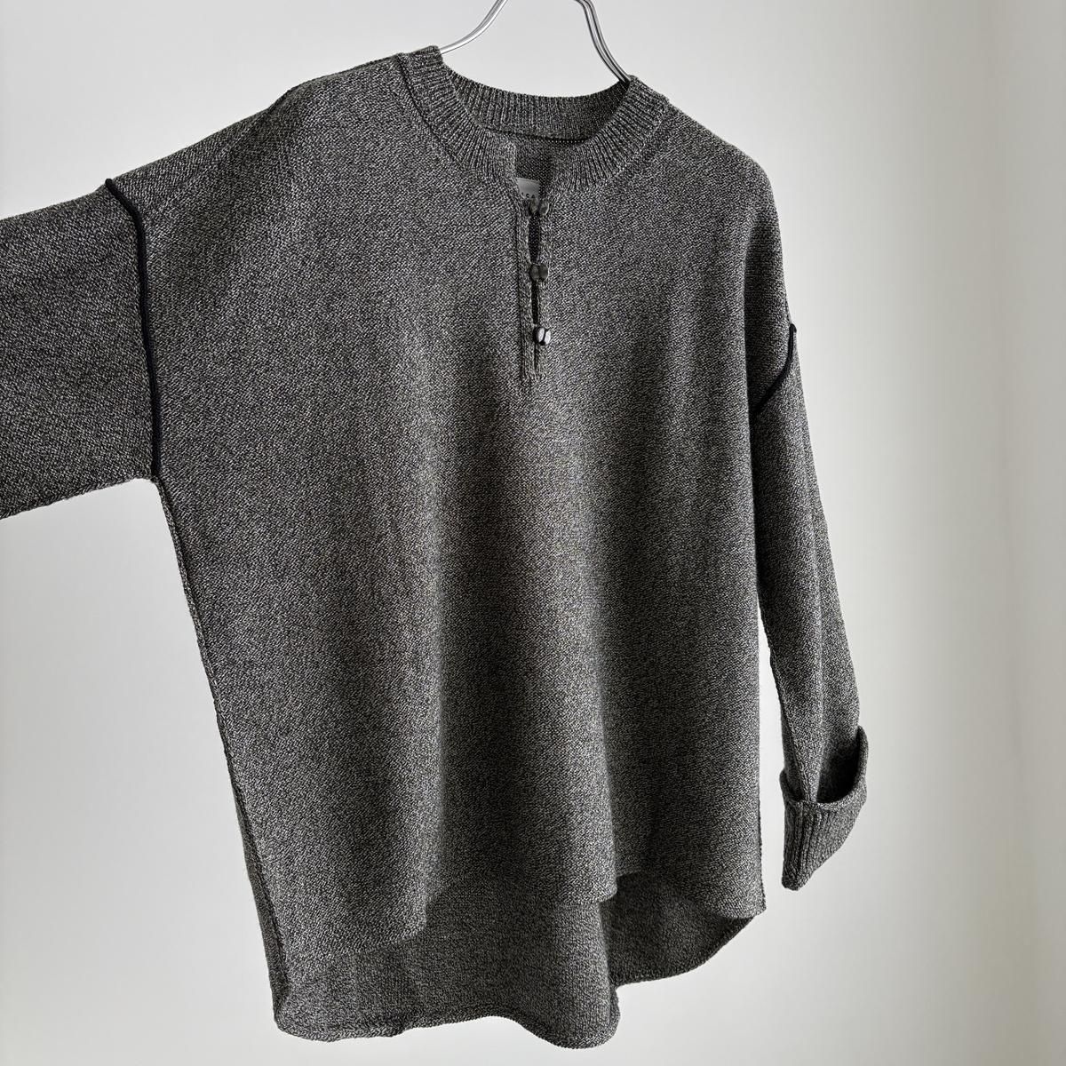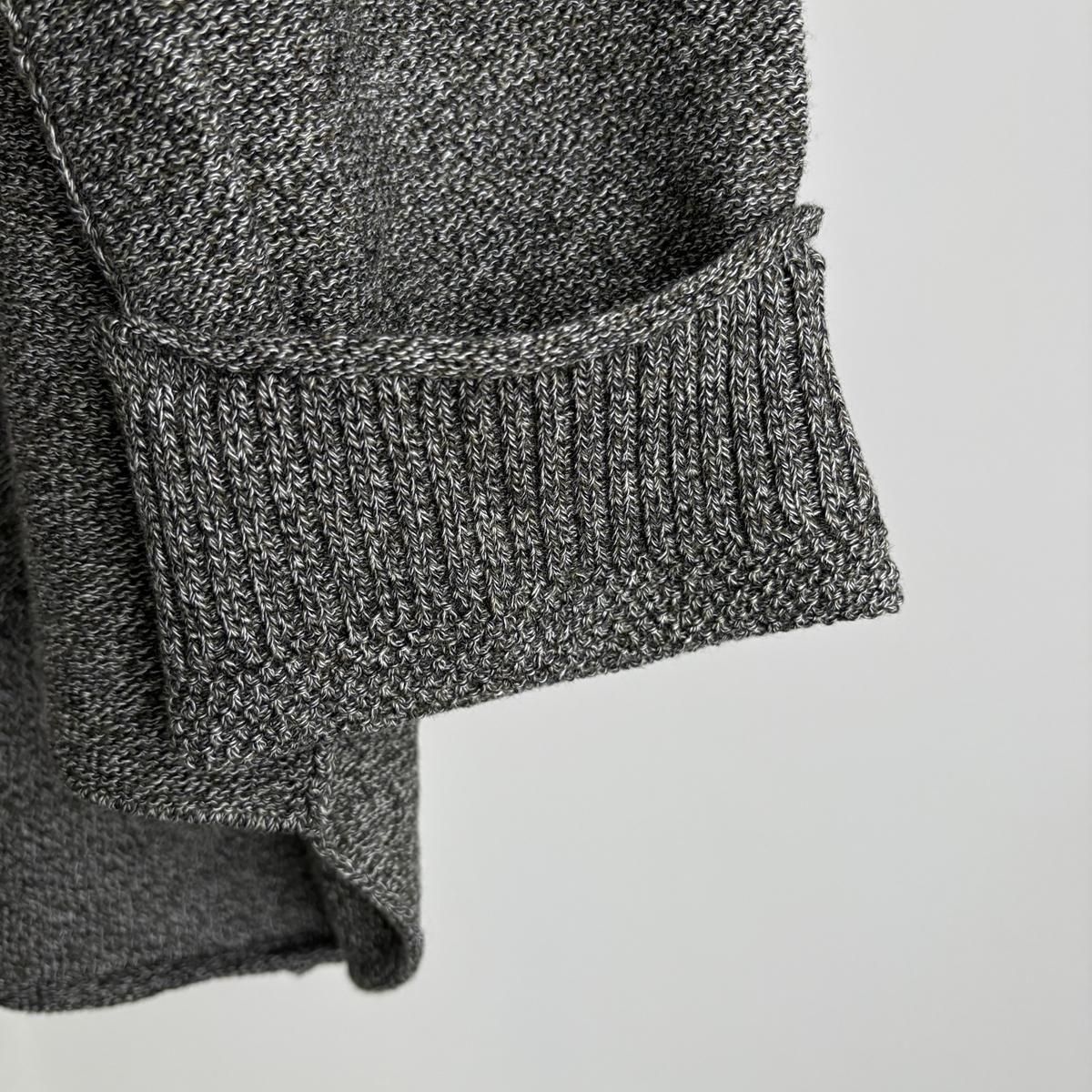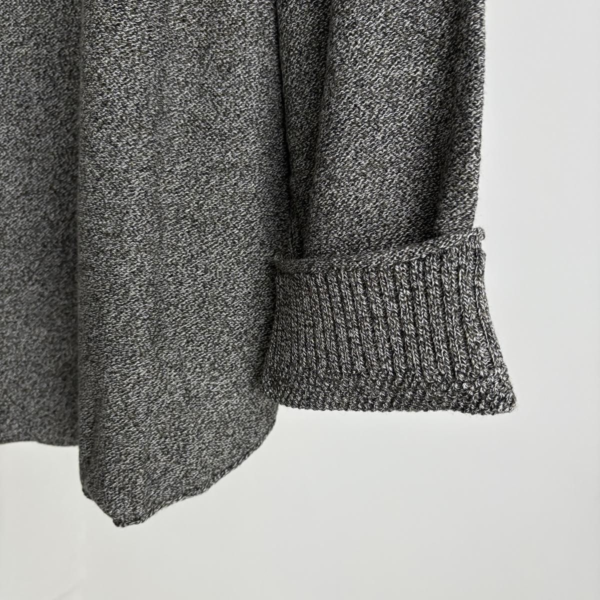 着た時のシルエットの良さも計算され設計されています!後ろ裾をラウンドさせて少し長めに編まれていて、フロントはすっきりとした着丈に仕上がっているので小柄な方が着ても、絶妙なバランスで雰囲気良く着られます。編み端の表情がかわいらしかったということで、脇やお袖は外接ぎにされたとのこと、、、そういった細かなニュアンスがたまらなく愛おしいです。