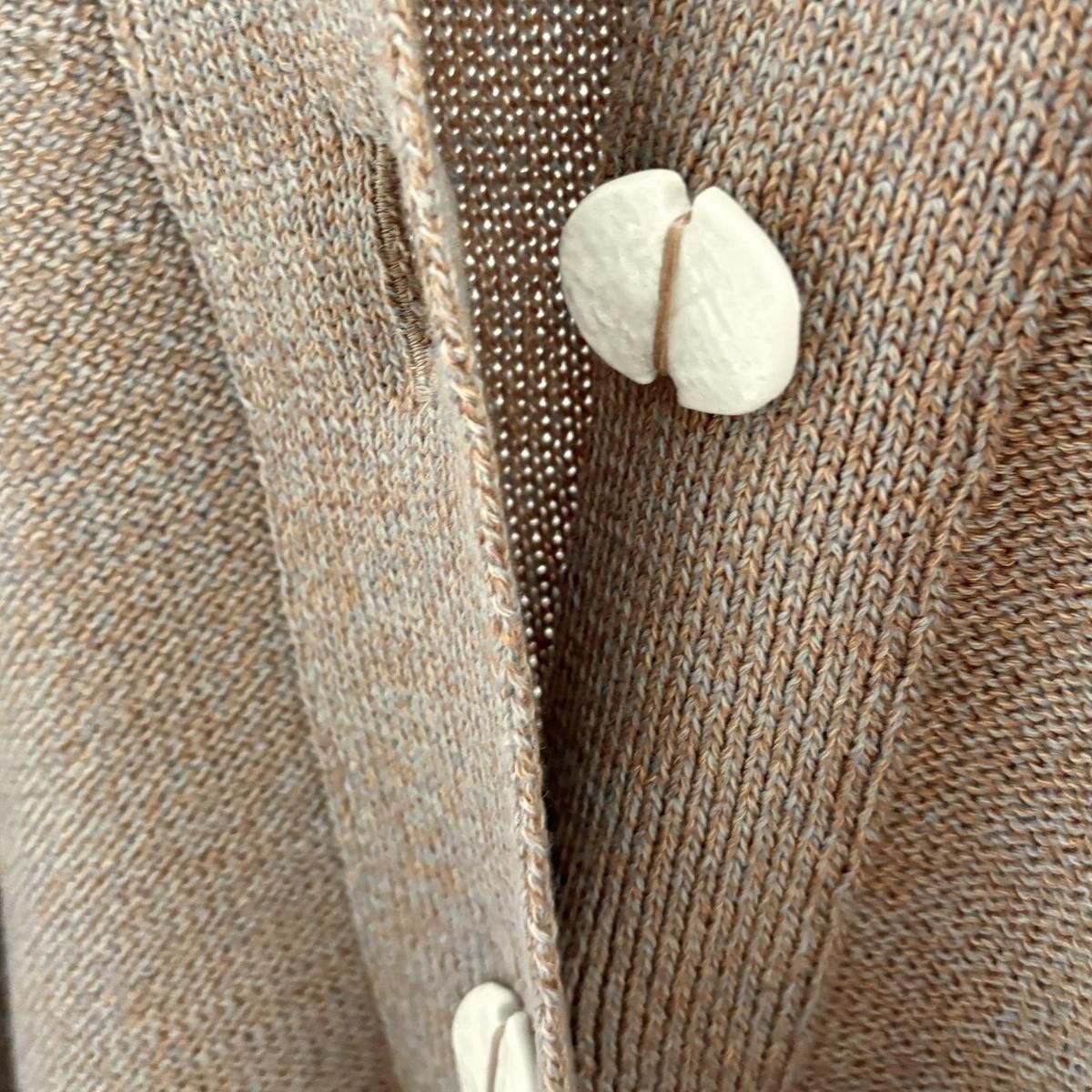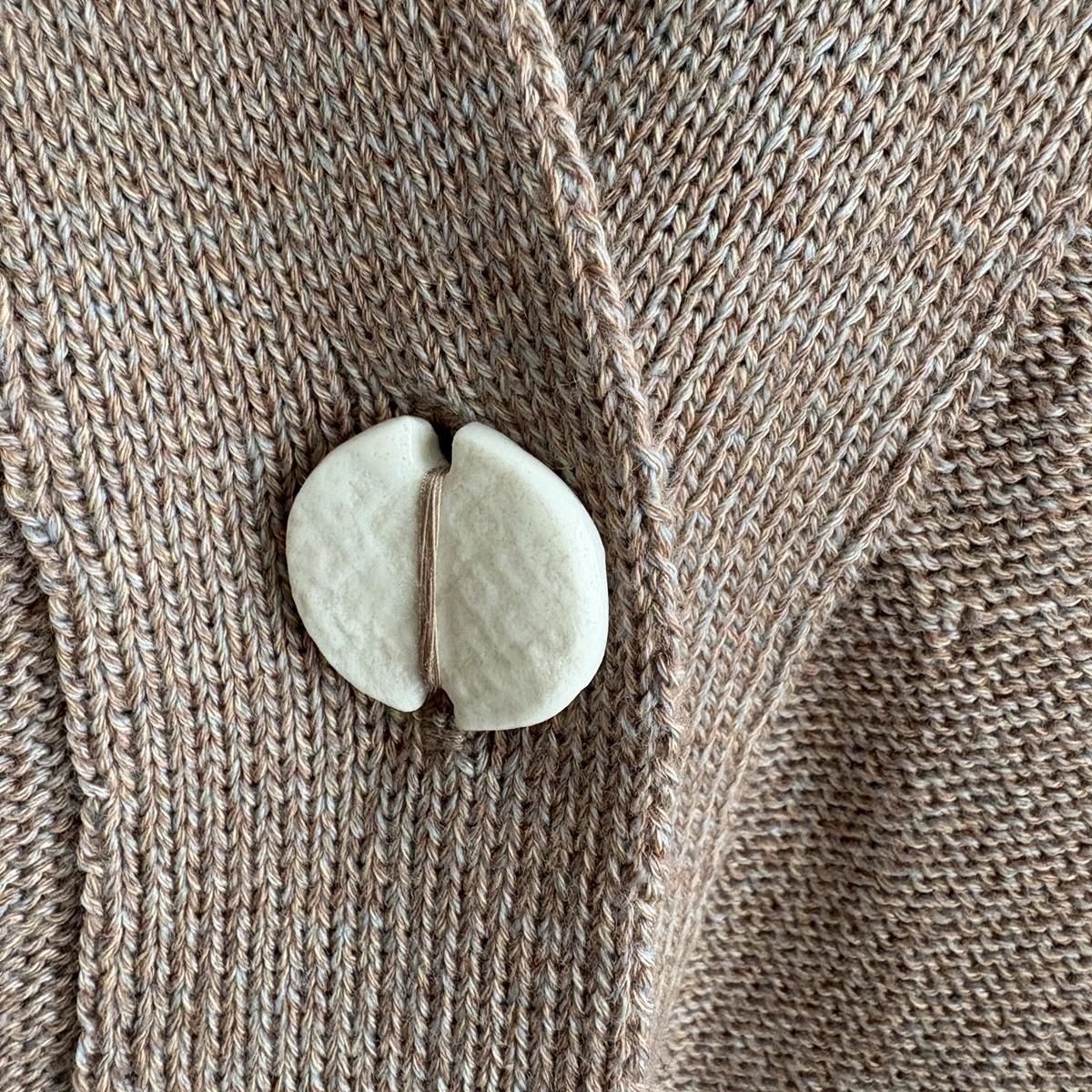 こんなボタンのカタチ見たことない!と思えるかわった形の陶器のボタンはもうアートピースのひとつですね。とても素敵です!