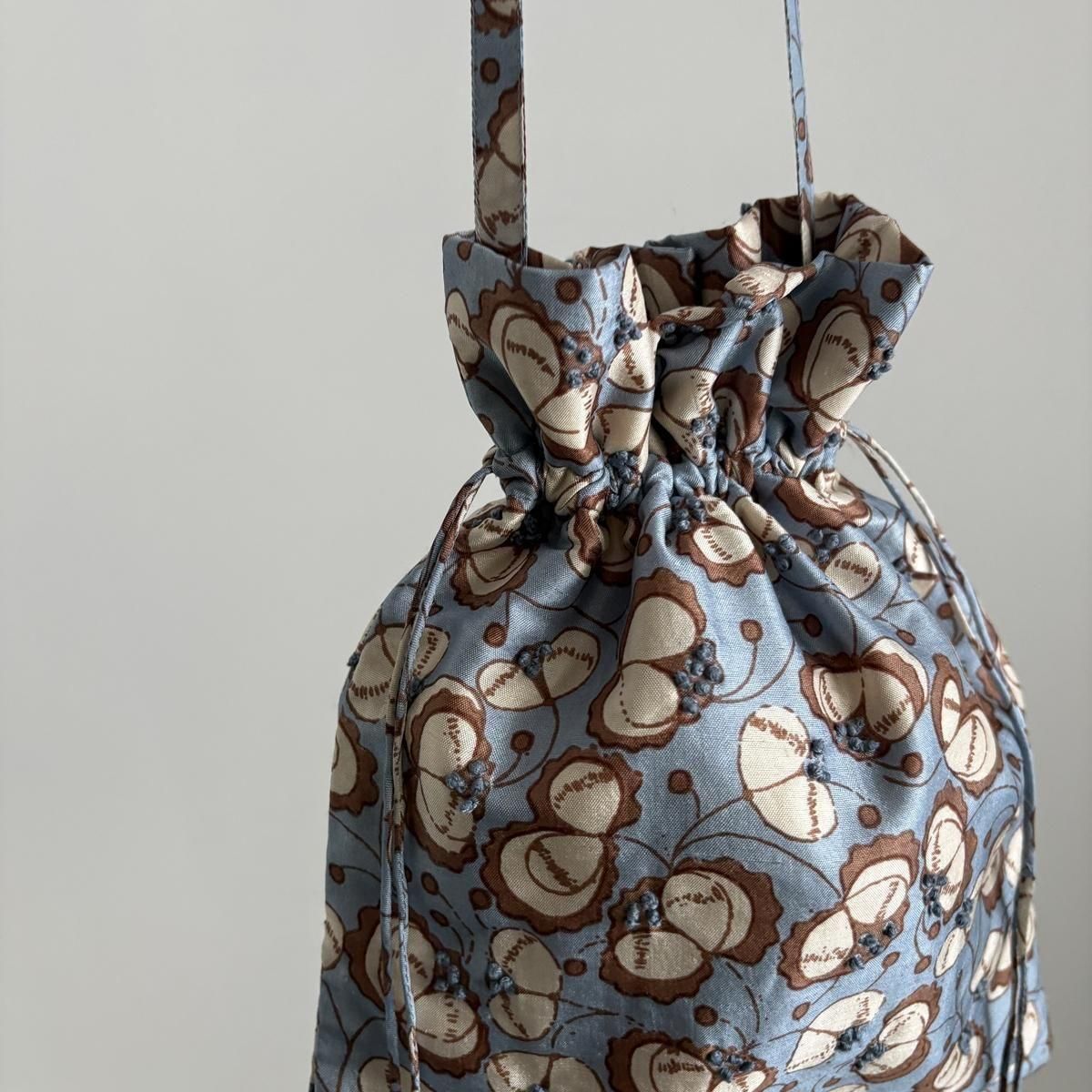見た目からして心くすぐられる巾着バックですが、こちらで使われている生地の刺繍はすべて手刺繍。