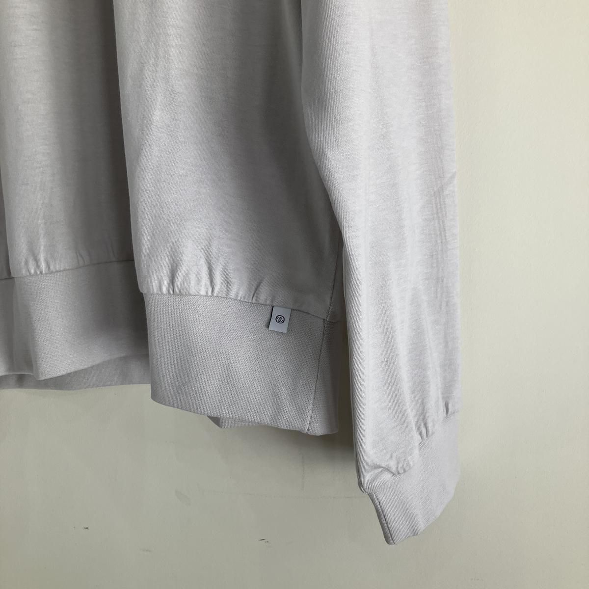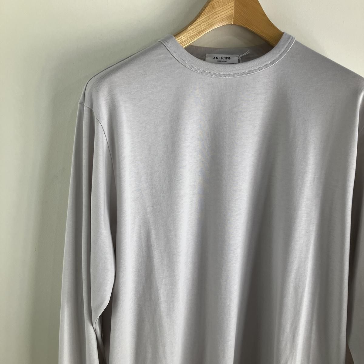 アンティーチポ定番素材のSmooth非常に柔らかい綿で洗った後も皴が気になりにくいそこそこ厚手の素材。そして袖・裾のリブがニットのようでジャケットの中にも上品に着れます。一枚で着ても絶妙なゆとり感が体を綺麗に見せてくれます。時代感を反映させたリラックス感ある"ちょいユル"シルエットでありながら、袖と裾にはリブが付属。これによってニットTのような品のある見え方になり、世代を問わず着られる"ちょいユルT"に!これが人気の理由です。Tシャツだと乳首の透けが気になる方もいらっしゃると思いますが、こちらはほとんど透ける事はありませんでした。Tシャツ1枚に自信が持てない私でも、ジャブスTのディテールだと、どこか自信が持てるのが一番のポイントです!