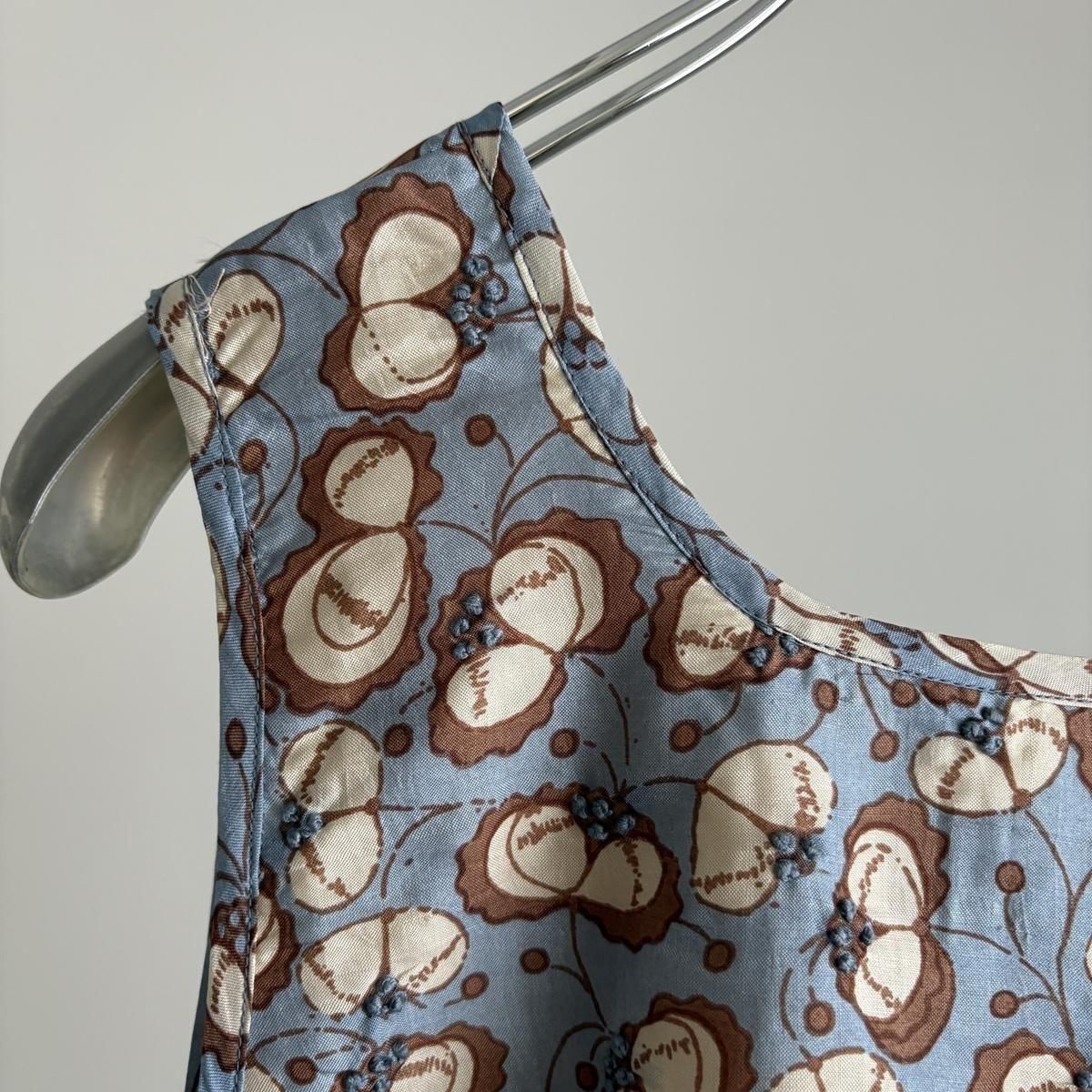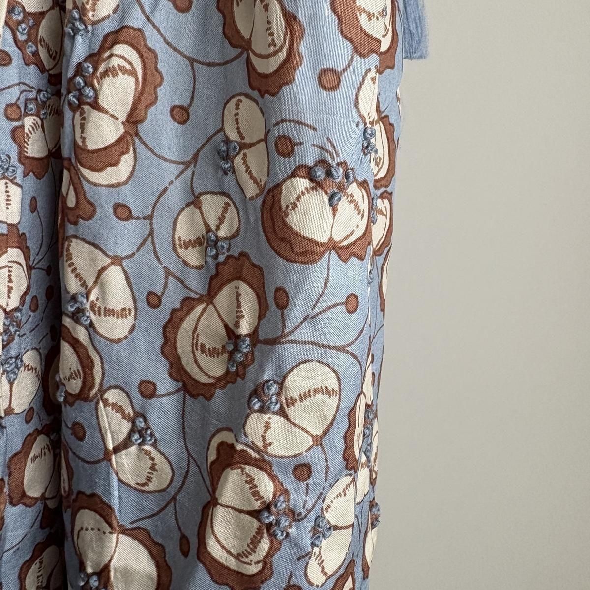 ハンドプリントに花芯のドット部分は刺繍が施され、こちらもすべて手刺繍。