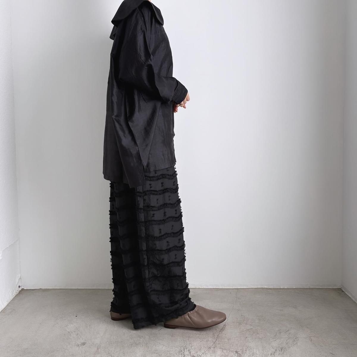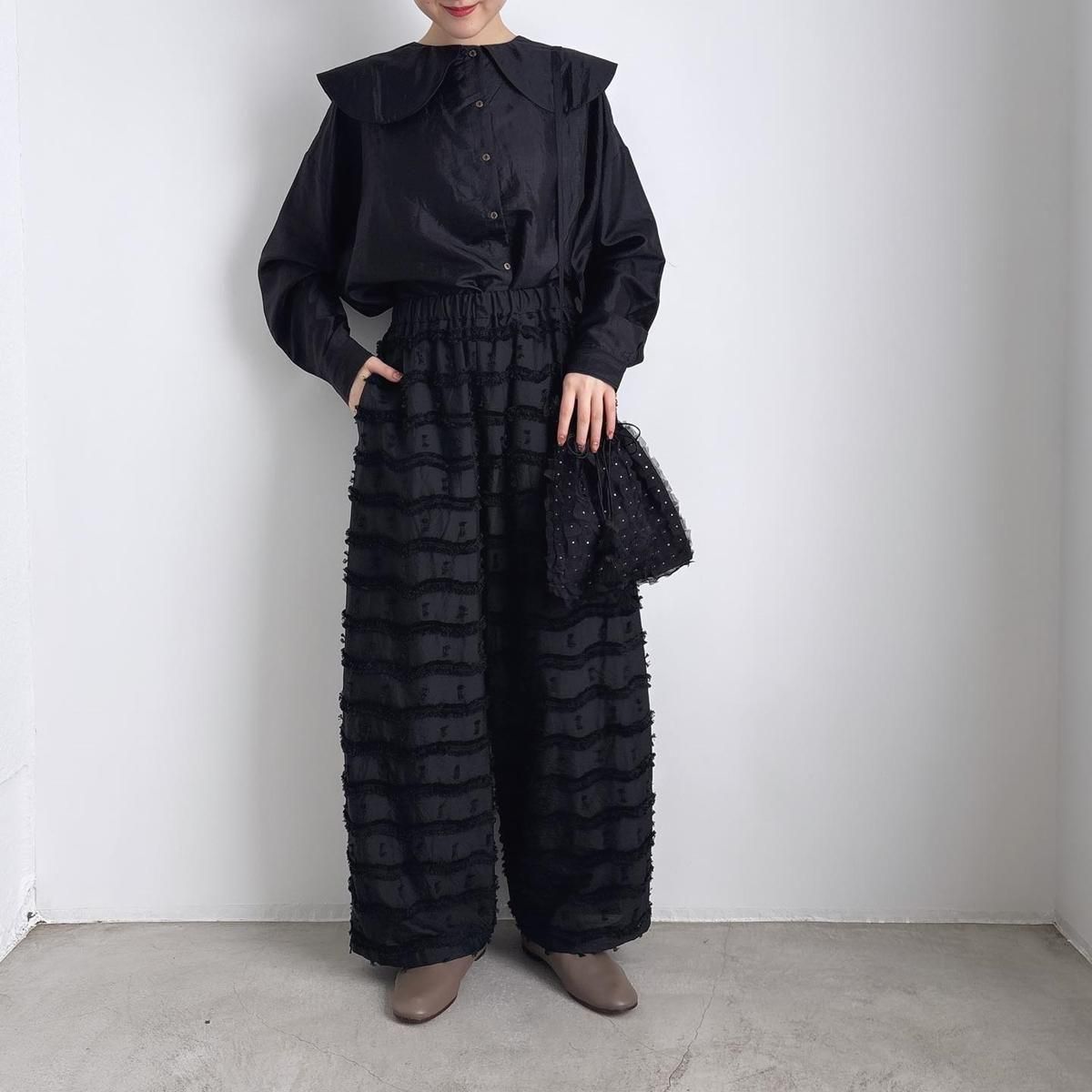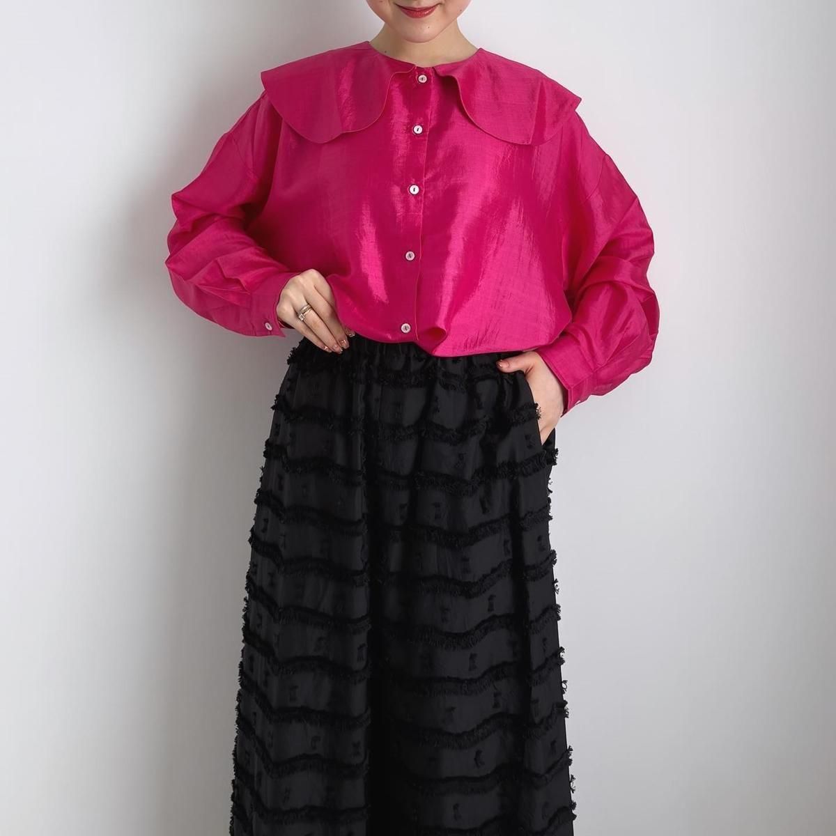 25AWの白桃のテキスタイルのブラウスと合わせるとセットアップ感がうまれます!