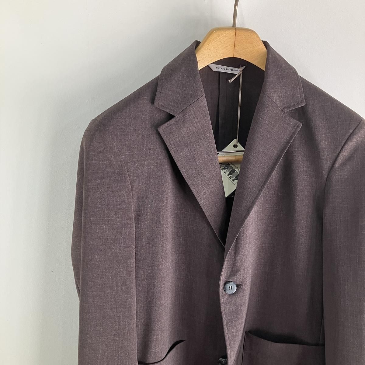 ジャブスの新しいジャケットモデルDOSSOとお馴染みMASACCIO のセットアップスーツ。ジャケットはDOSSO仕立て映えと軽やかさを両立するカーディガン+ジャケットをテーマに設計され、裏は大見返しが採用され、従来に比べた寸法上のコンパクトさも特徴。また、立体的に仕立てられた袖付けやラペル周りが体にフィットしながらも動きやすく、リラックスの中にもクロージングの印象を高めています。素材はメランジカラーが特徴のポリエステルウールテクノファブリック。適度な目付で通気着用が可能で、ストレッチ入りによる皺になりにくい快適な素材です。