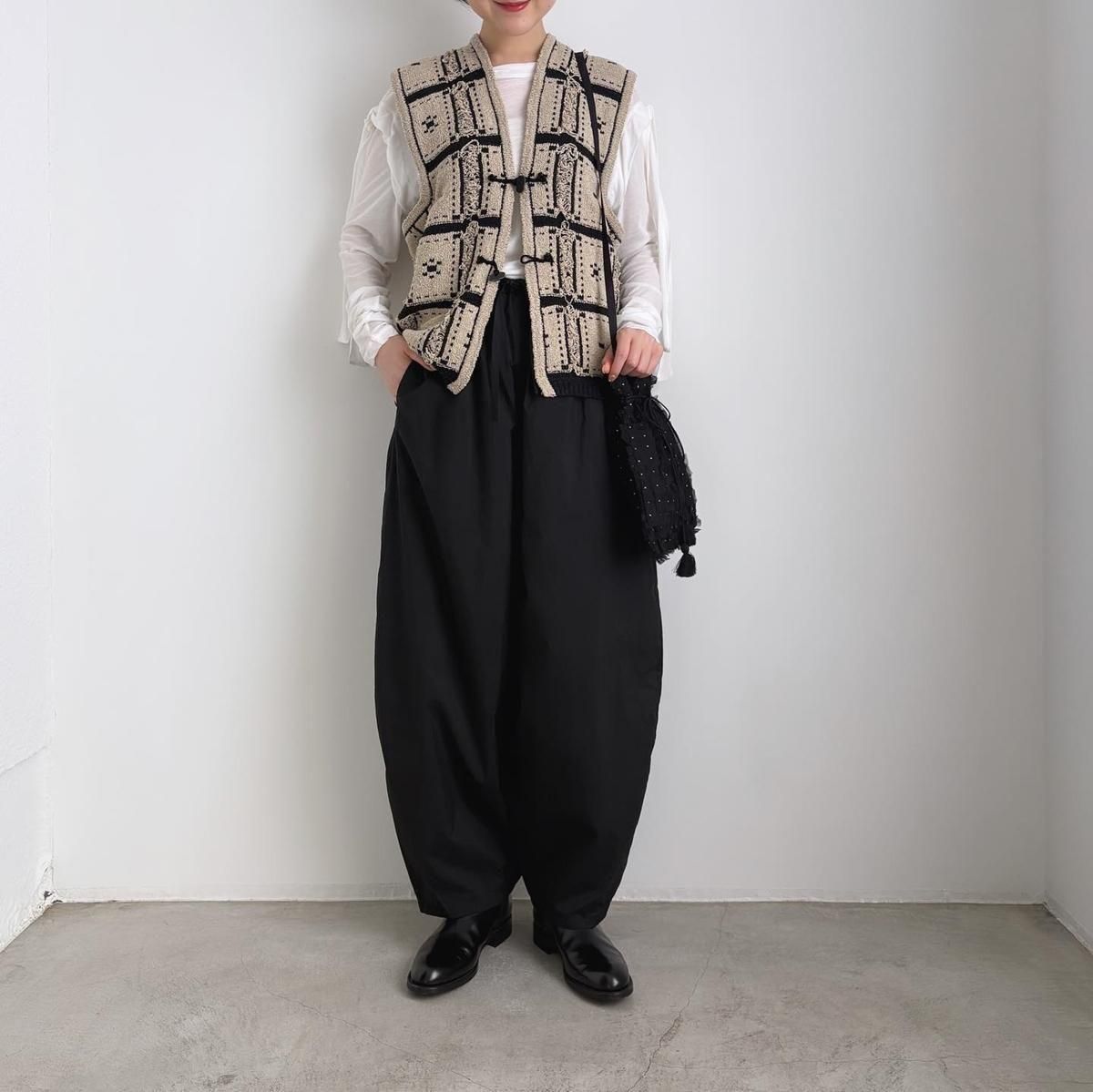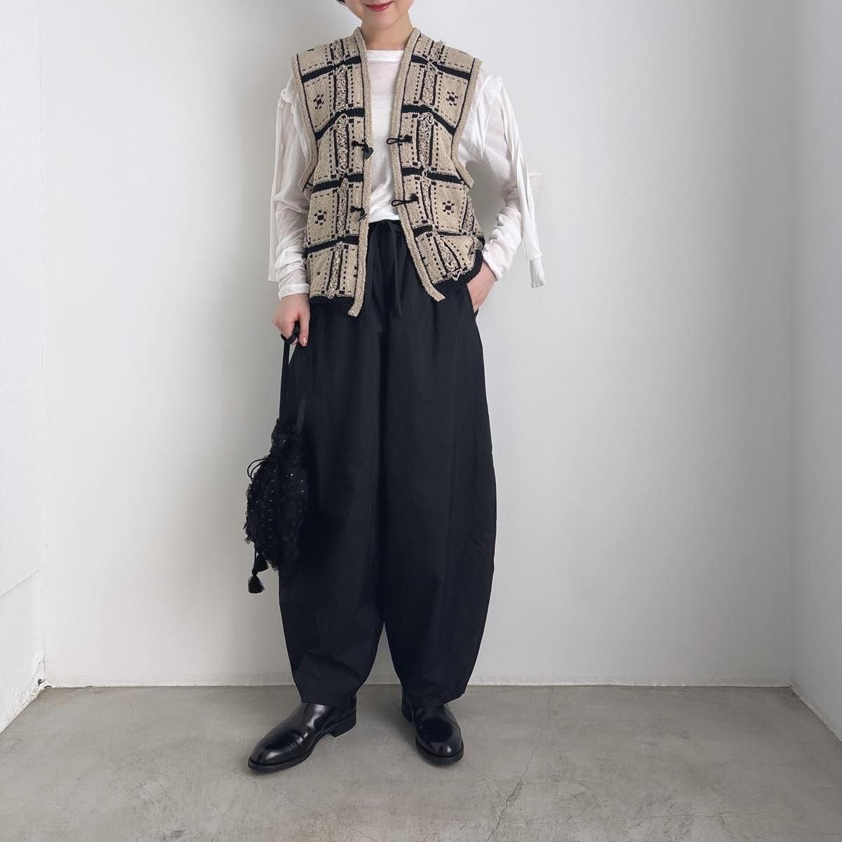 春夏でも展開されていたhakutou(白桃)の生地が使われている、コクーンパンツです。