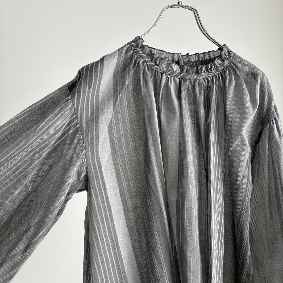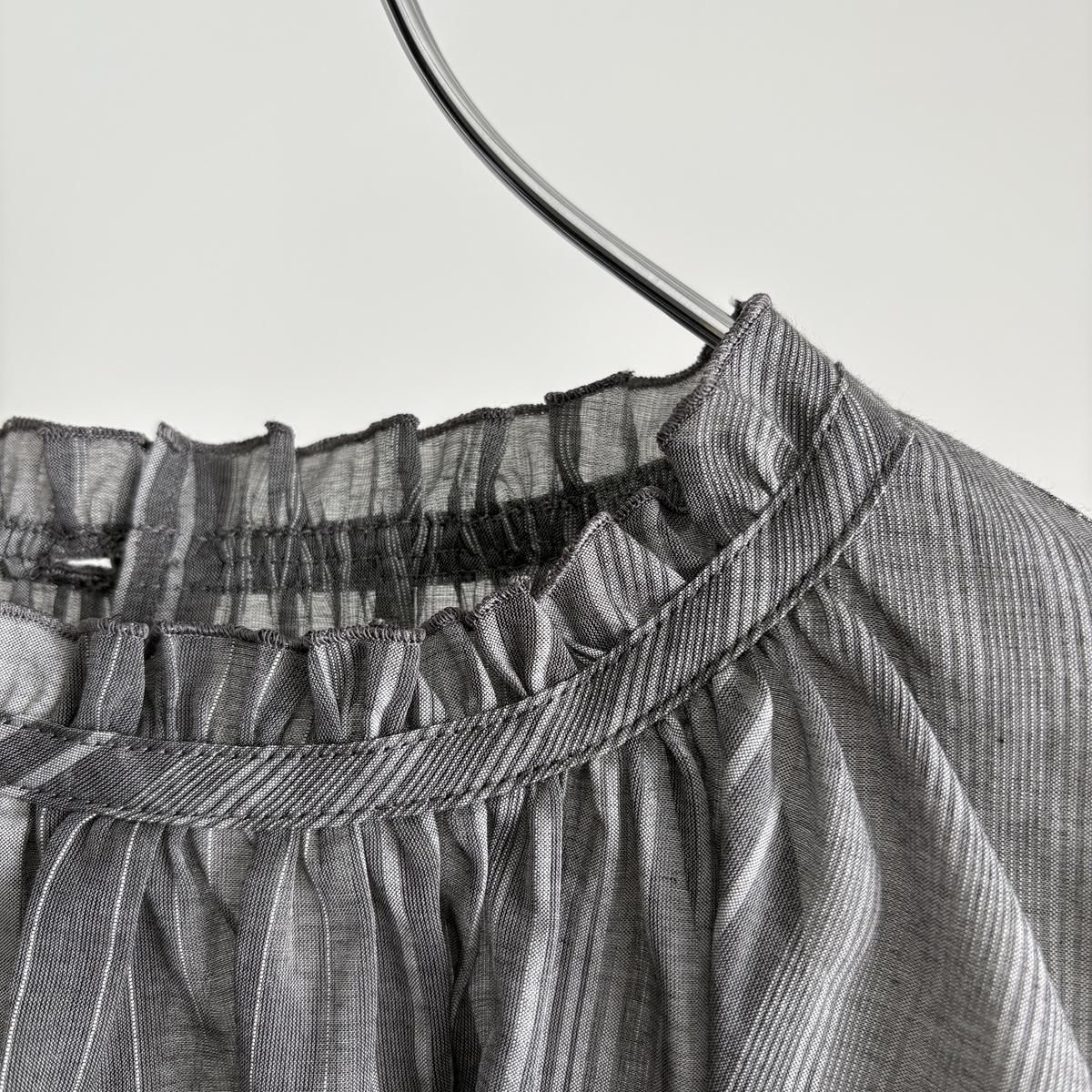 水面に光る波紋を彷彿させる細やかなグラデーションのストライプは、生地幅いっぱいがひとつの柄になっていて、左右非対称になっているとのこと。