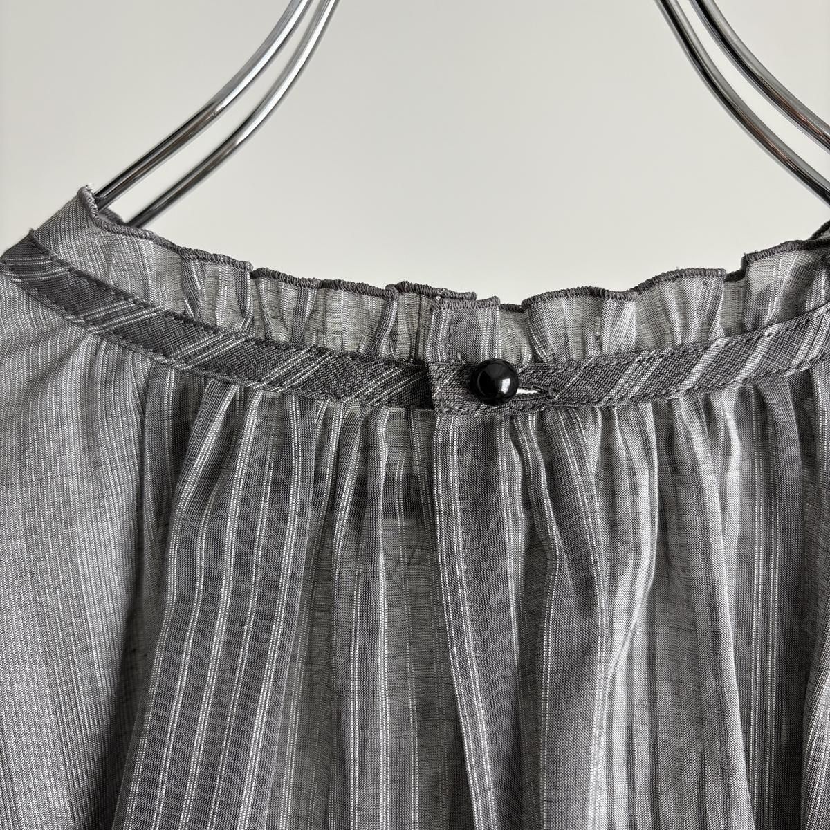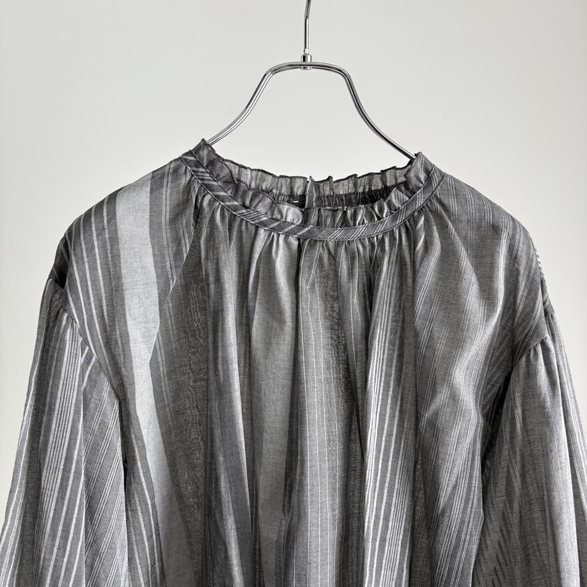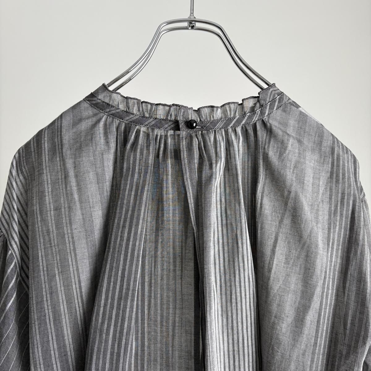 マニッシュな佇まいも感じられる柄ですが、首元のフリルがさり気なくも効いています。