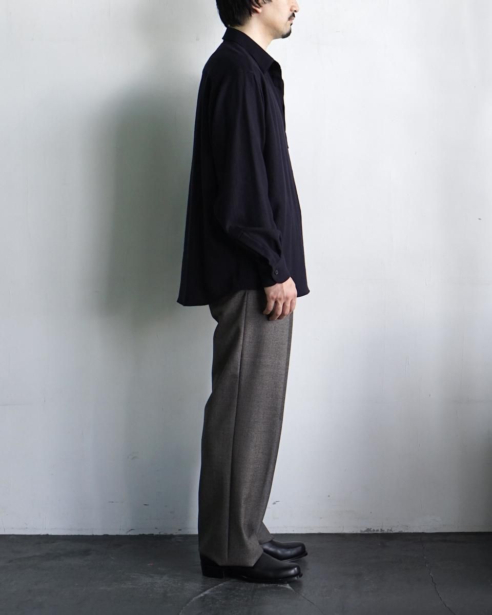 ・軽めの縮絨で原料の柔らかさを最大限に活かしたシャツウエイトの上質素材原料のもつ自然な光沢と、一切痒みの無い滑らかな肌当たりが特徴。