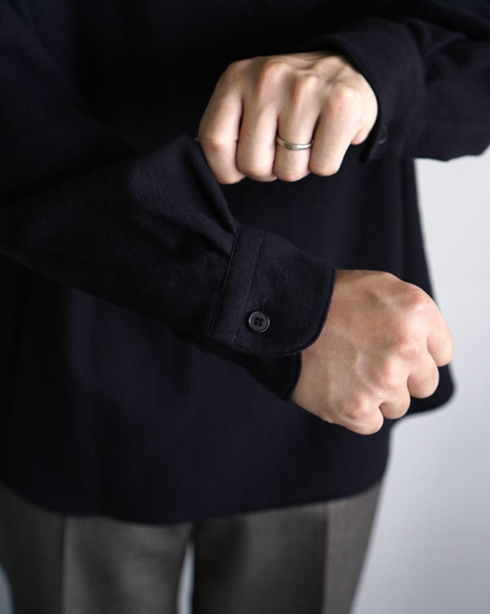 ・カシミアに匹敵する繊維の細さのsuper180'sメリノ梳毛糸を使用して織り上げたライトフランネル素材のスキッパーシャツ。