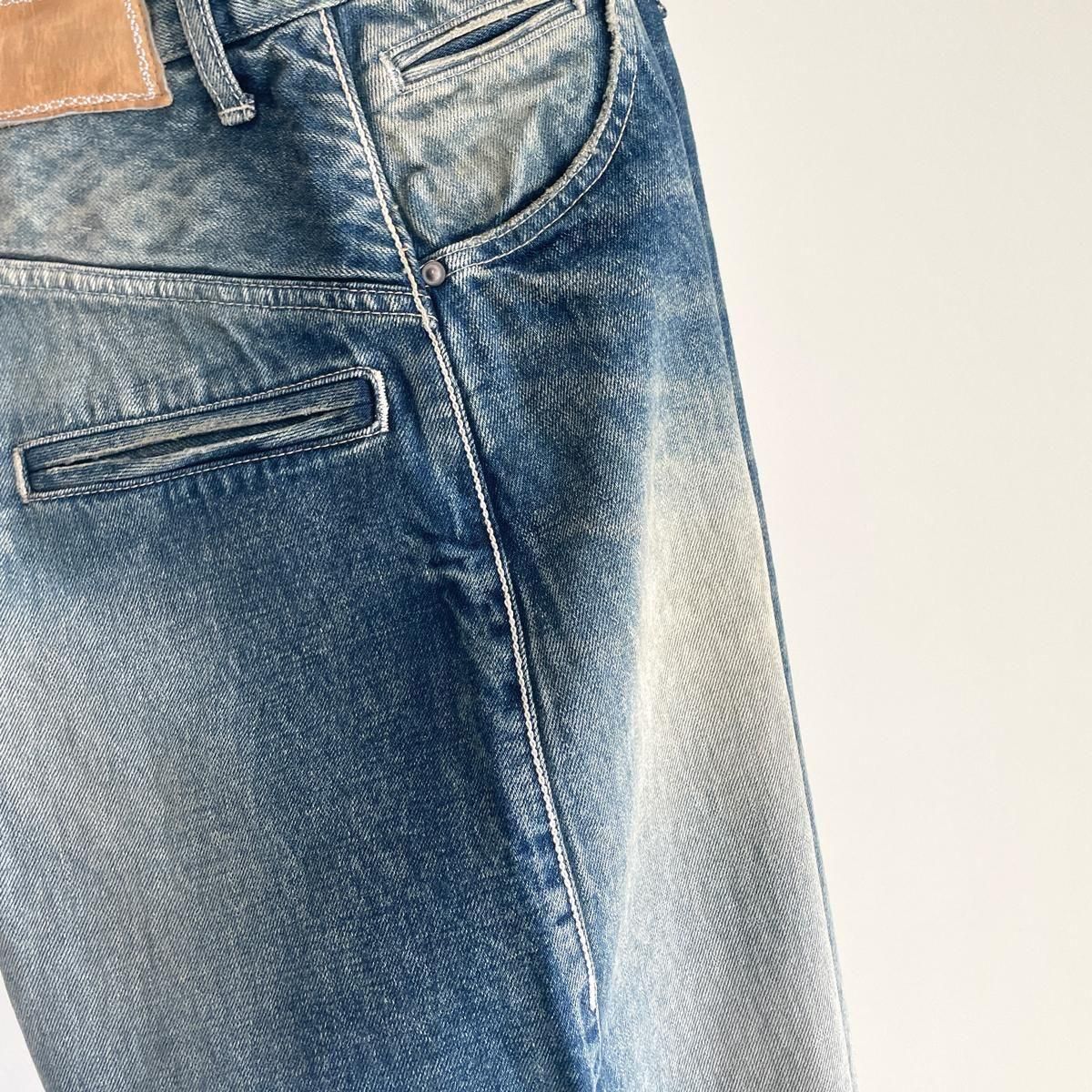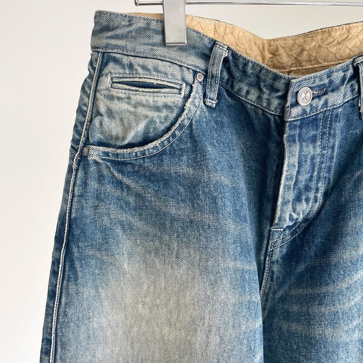 ミナペルホネン定番アイテムとして人気のある“always”シリーズのデニム。横糸にリネンを使用した、独特の爽やかで柔らかな手触りです。デニムシリーズの中でも昔からつくられている、ミナペルホネンではスタンダードなシルエットがこちらのロールアップデニムです。ヒップ、 腿周りにゆとりがあり、まるみのあるシルエットが特徴。フロントはボタンフライ、両サイドのステッチ、裾の赤ミミ、ボタンはchouchoの刻印がされ、バッグポケットの内側に“マーメイド”のテキスタイルが施され、拘りが詰ったデニムに仕上がっています。着用していくとマーメイドのうろこ刺繍のあたりが表にでて、経年変化をお楽しみいただけるデニムです。 【C】