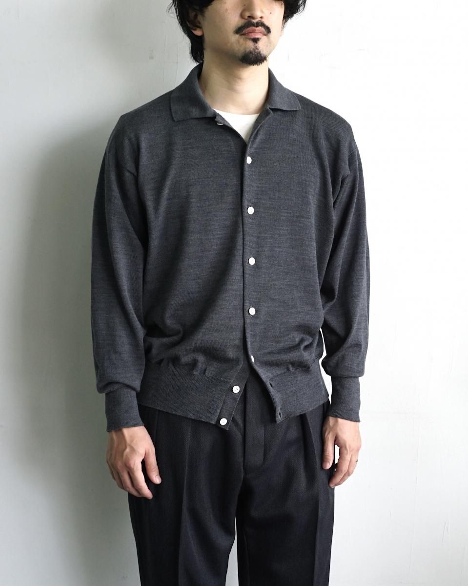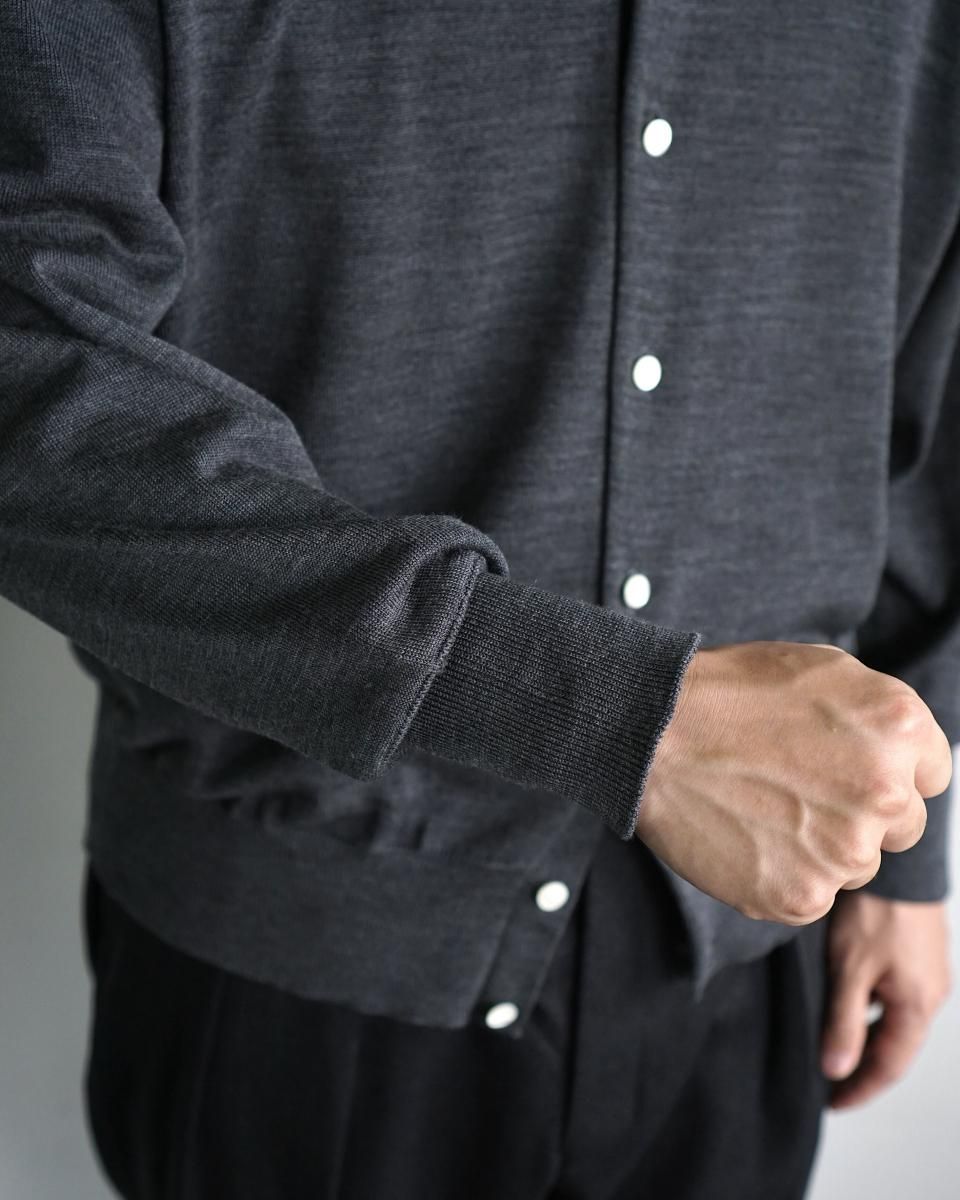 ・ホールガーメントで網立てられた上質な梳毛ウール100%のベーシックなニットポロカーディガン。