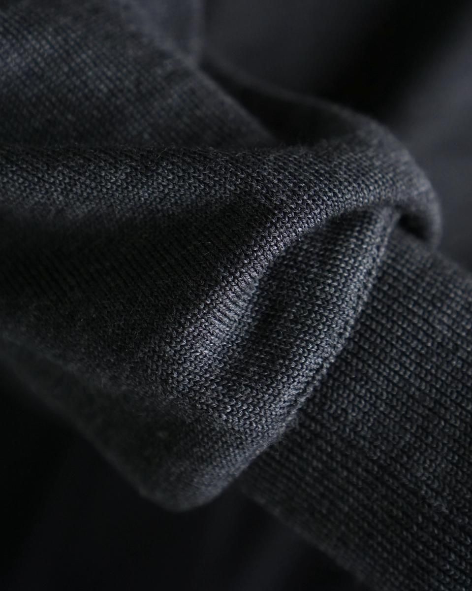 ・チクチク感皆無の着心地はもちろんのこと、定番シルクニットと同様にリブのテンションや度詰な肉感も魅力。