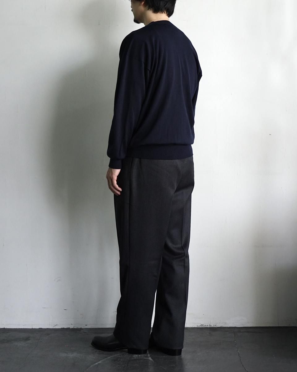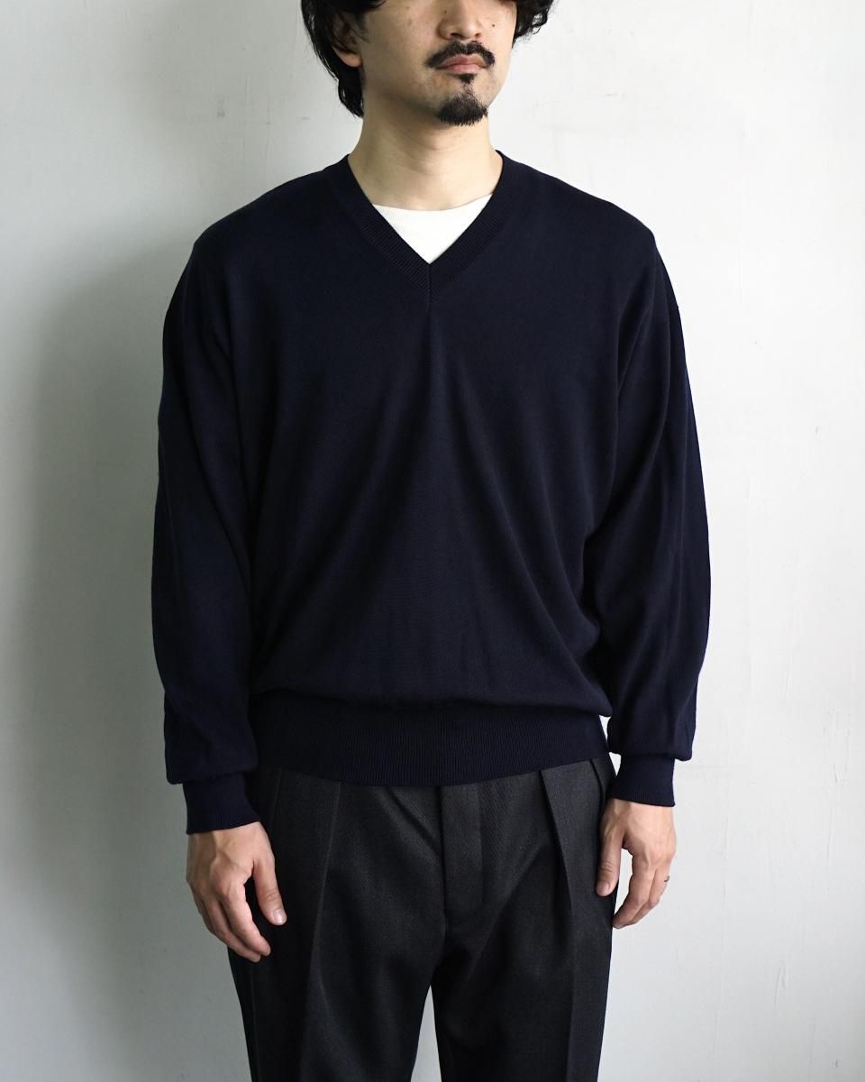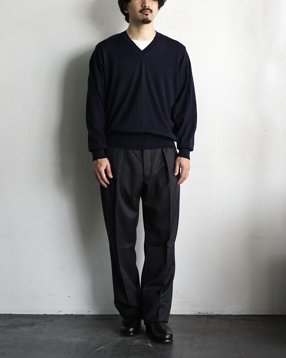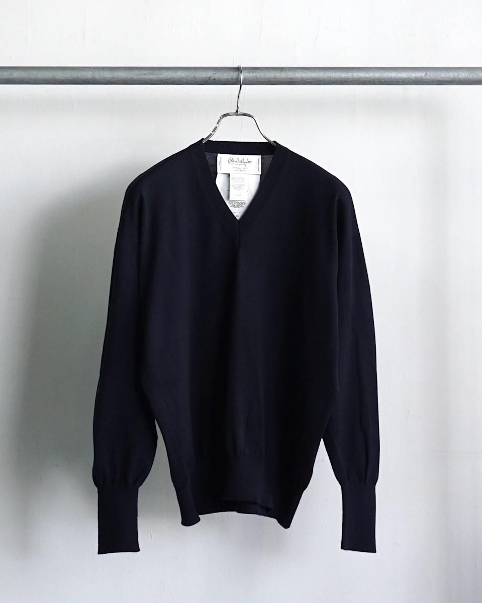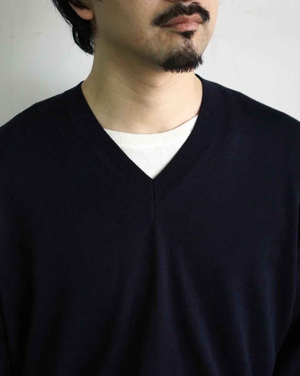 ・ホールガーメントで網立てられた上質な梳毛ウール100%のベーシックなVネックニット。