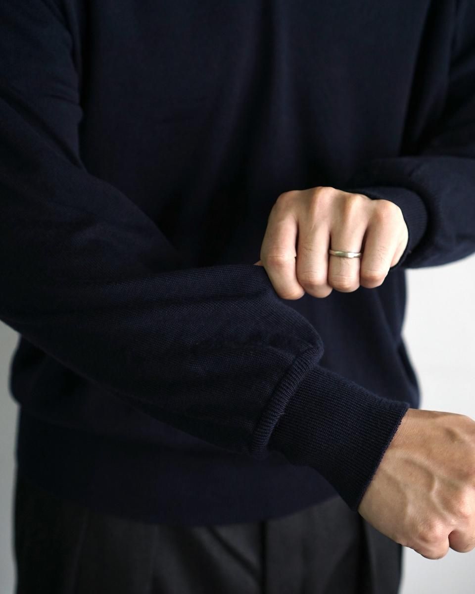 ・チクチク感皆無の着心地はもちろんのこと、定番シルクニットと同様にリブのテンションや度詰な肉感も魅力。