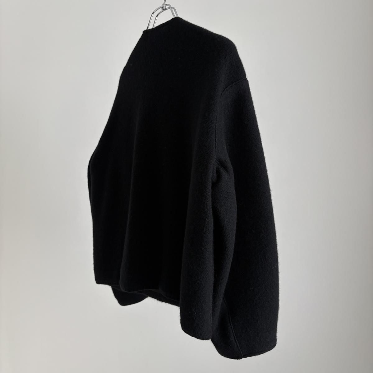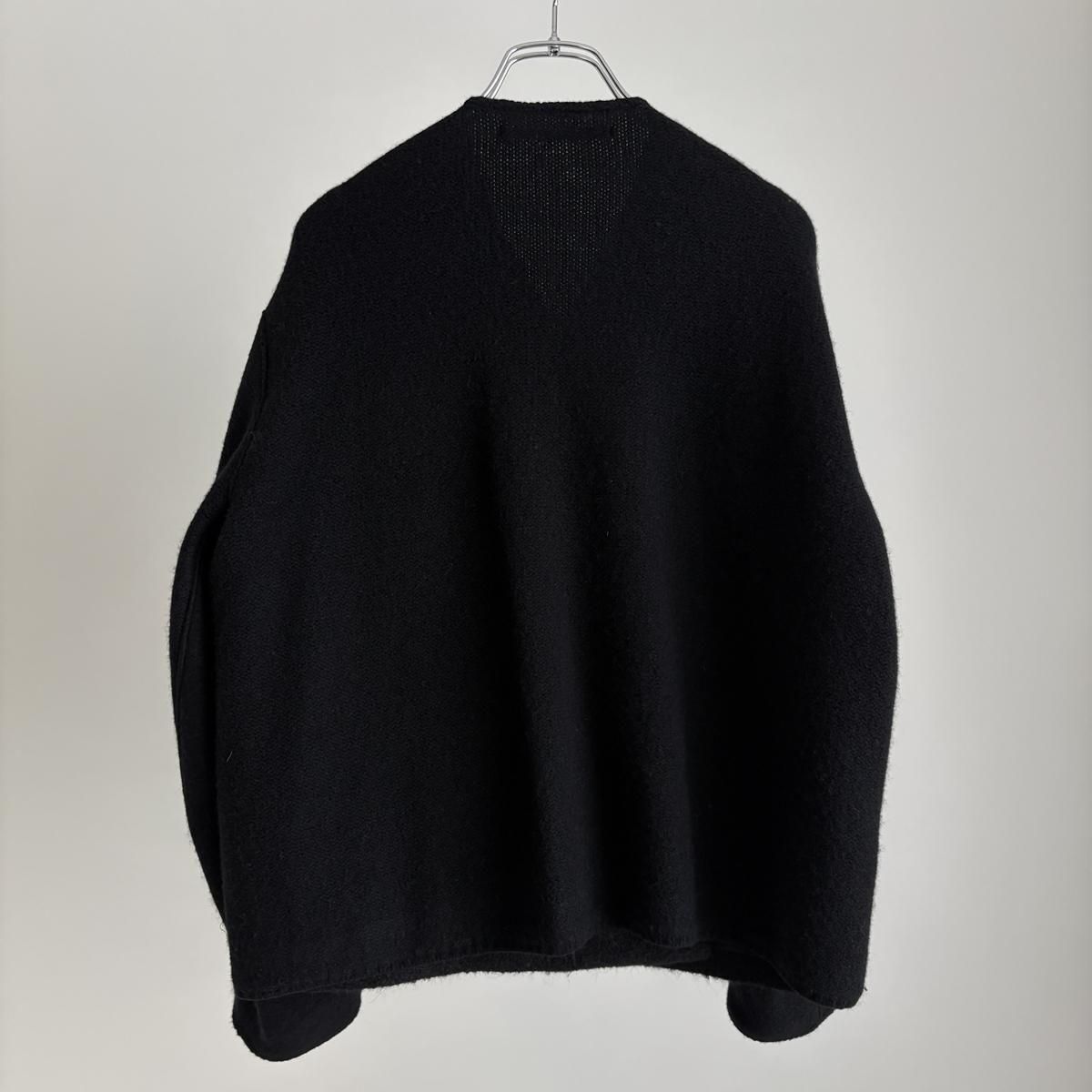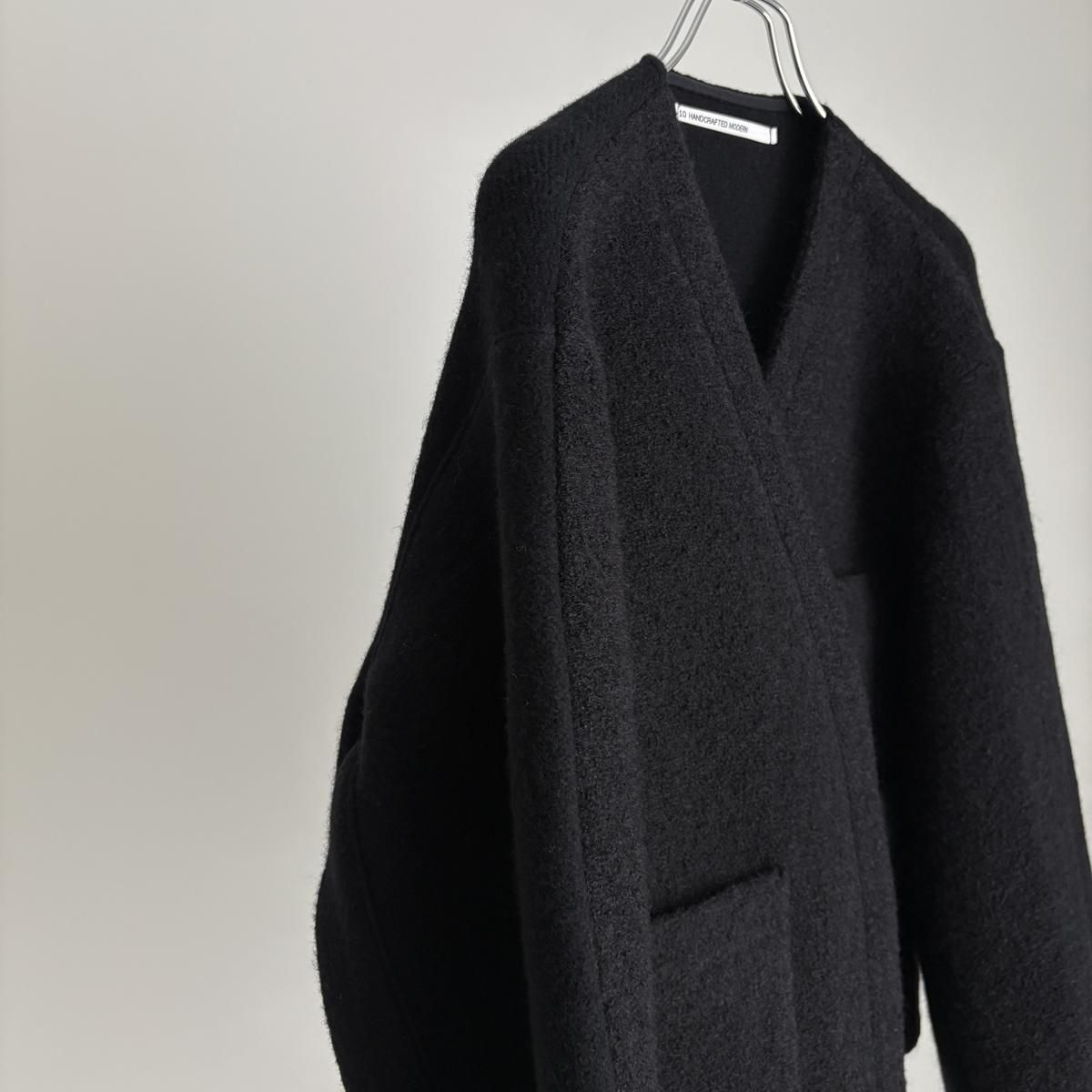 昨年大変人気だった前面はアンゴラツイード、後ろ面はニットとの組み合わせの、ノーカラーVネックジャケット。自店では入荷と同時に早々に完売してしまったアイテムでした。嬉しいことに今シーズンも展開されていました!前後で仕立ての生地が異なる、とても凝ったデザイン、ディテールです。お袖も同様に前と後ろ面では素材が異なります。