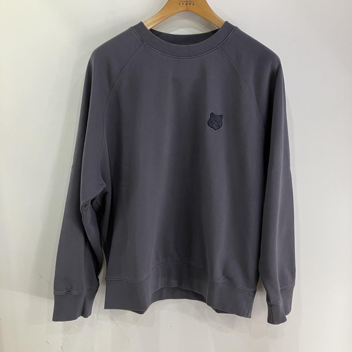 メゾンキツネの BOLD FOX (モノトーンのキツネ顔) のワンポイント。しっかりしたスウェット素材で、一年中着ていただけプルオーバーです。ラグランスリーブで大き目のシルエットは今の気分でGOOD!しっかりしたトレーナー素材は洗濯にも強く伸びてしまわない密度の詰まったトレーナー素材です。衿、袖、裾のリブもとてもしっかり仕上がっています。色は今年の新色チャコールグレー。なんにでも合わせやすい色ながらあまり見ない色なのでとても新鮮です。