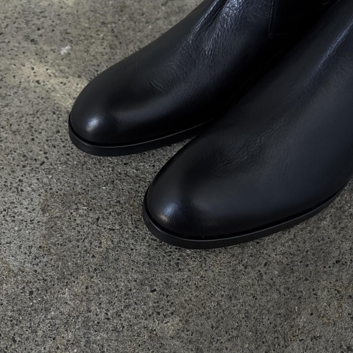 特徴的なのはシャフト(筒)の細さ。木型のシャープなフィット感に加え足首をしっかりとホールドすることで、美しく、そして履きやすい仕上がりとなっています。素材はこのサイドゴアブーツのために製作したしなやかな国産牛革。