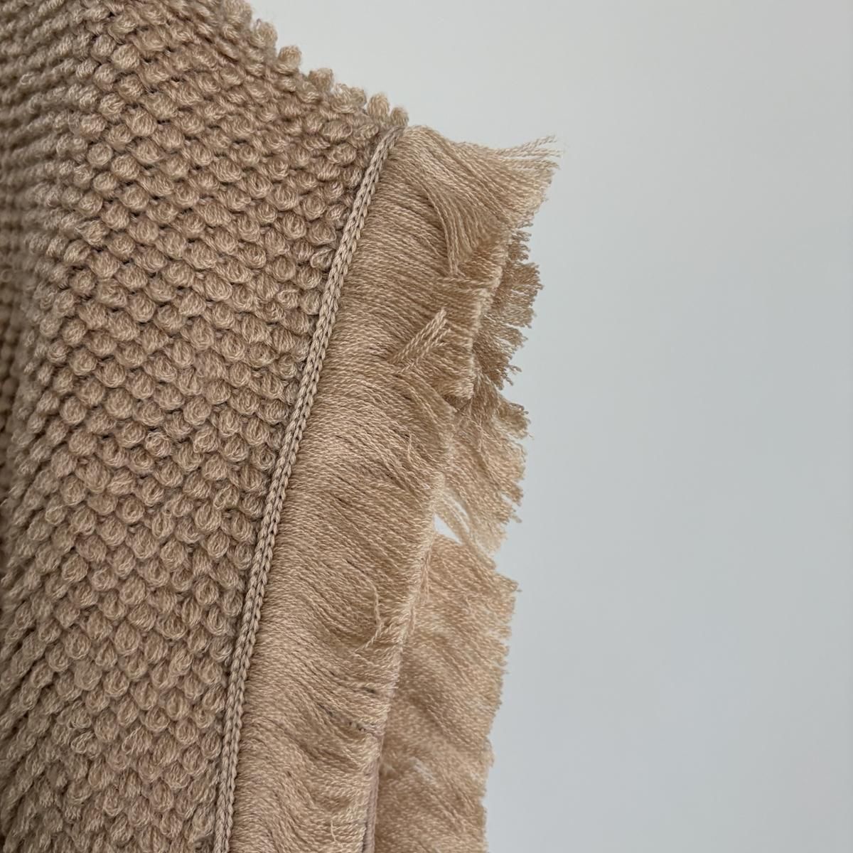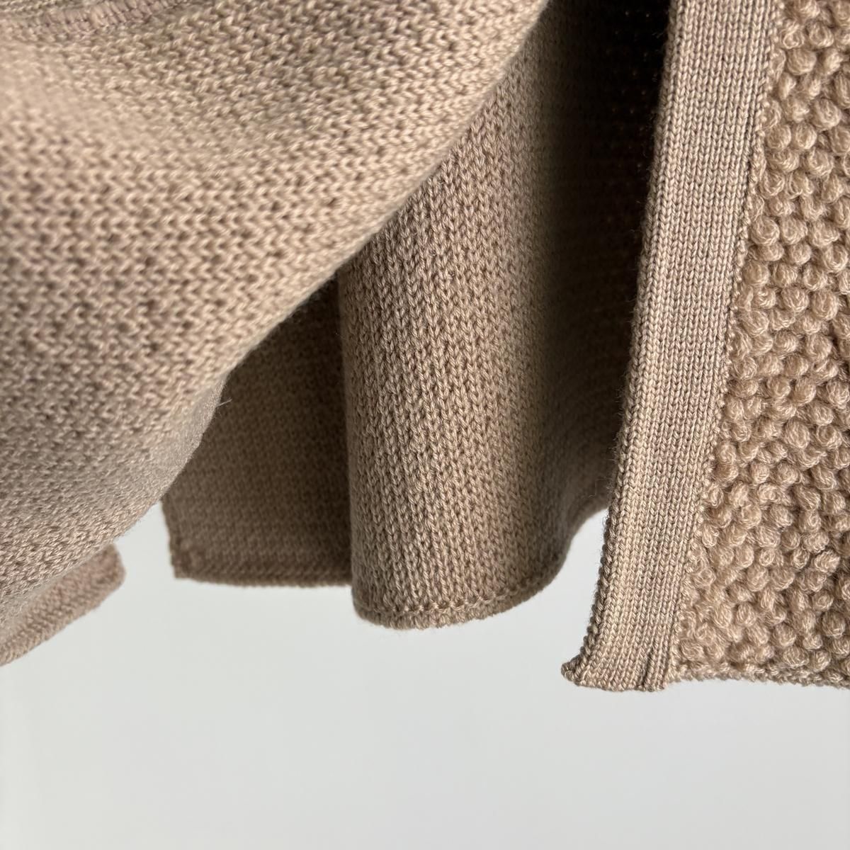ストレスのかからないように糸の編み方を何度も試行錯誤し、空気を含んだふっくらとしたタッチ。編み時間にとても時間をかけているので、一日当たりの生産量は2〜3枚ととても少ないとのことです。