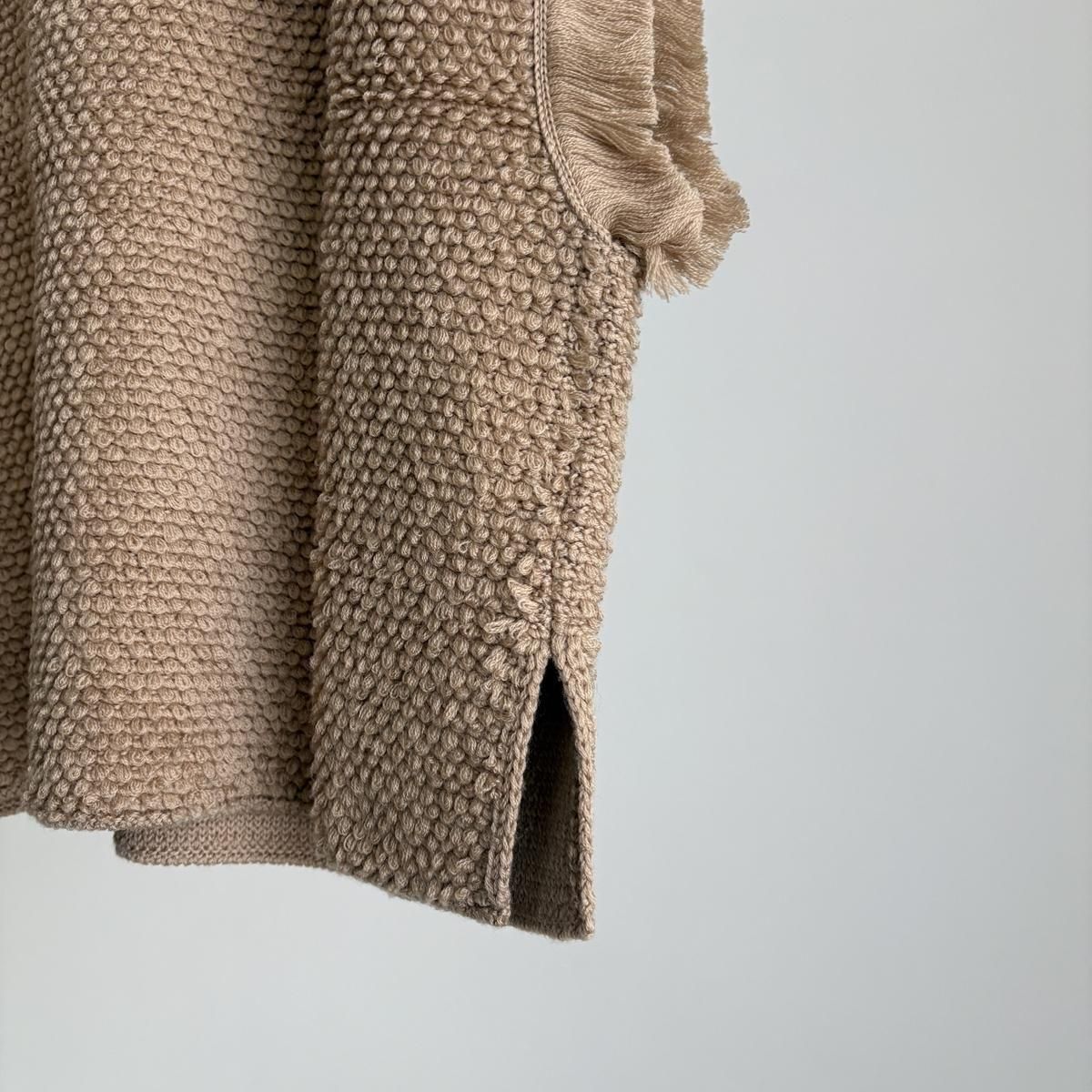腕回りにはフリンジ、裾はスリット、少しアクセントになるボタンも素敵です。