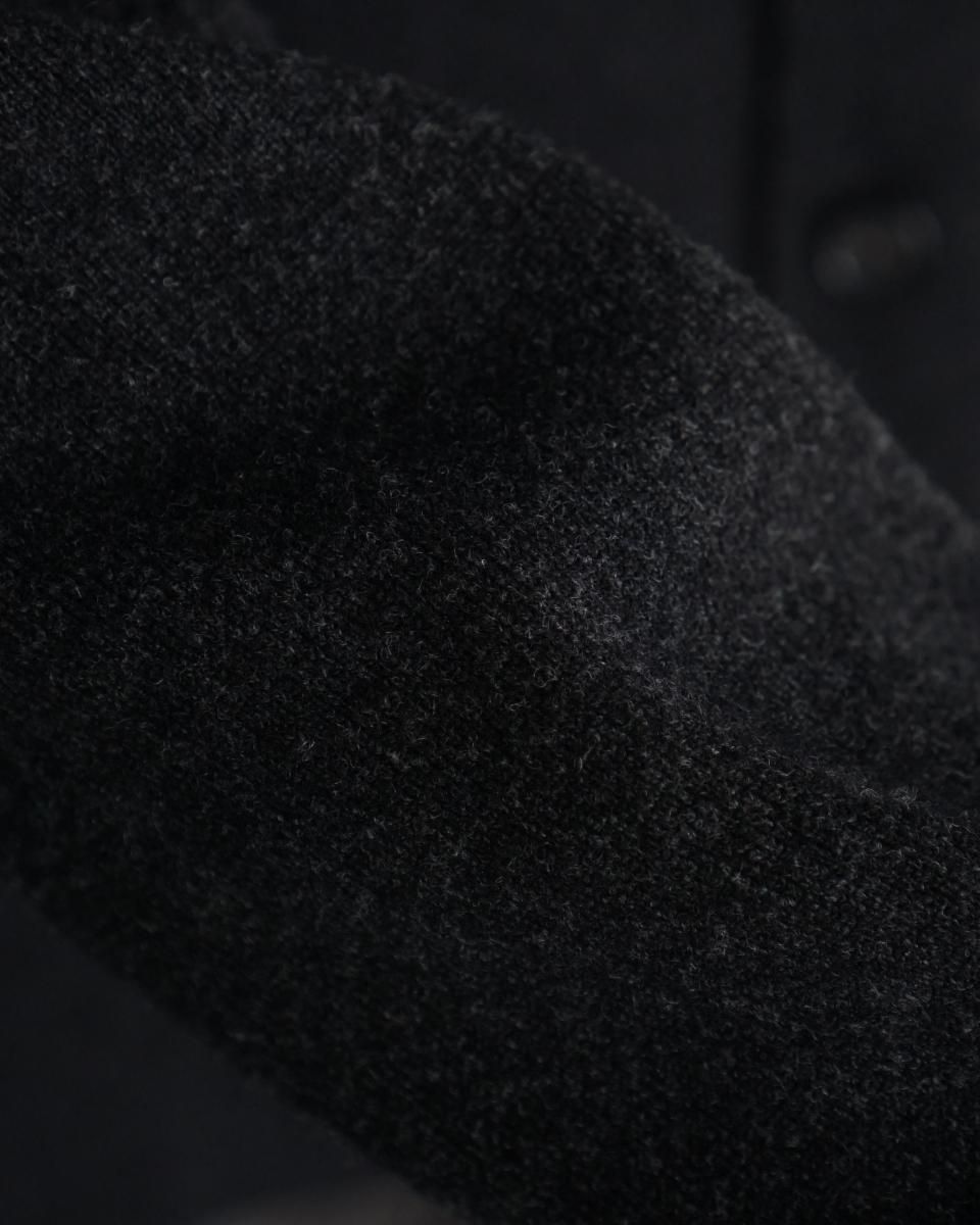 ・袖や裾にリブが無くサイドのスリット入ったデザインと 、独特の質感と相まってニットアイテムながらブルゾンのようなアウター感覚で着られて冬アウターのインナーとしても着られるアイテムです。