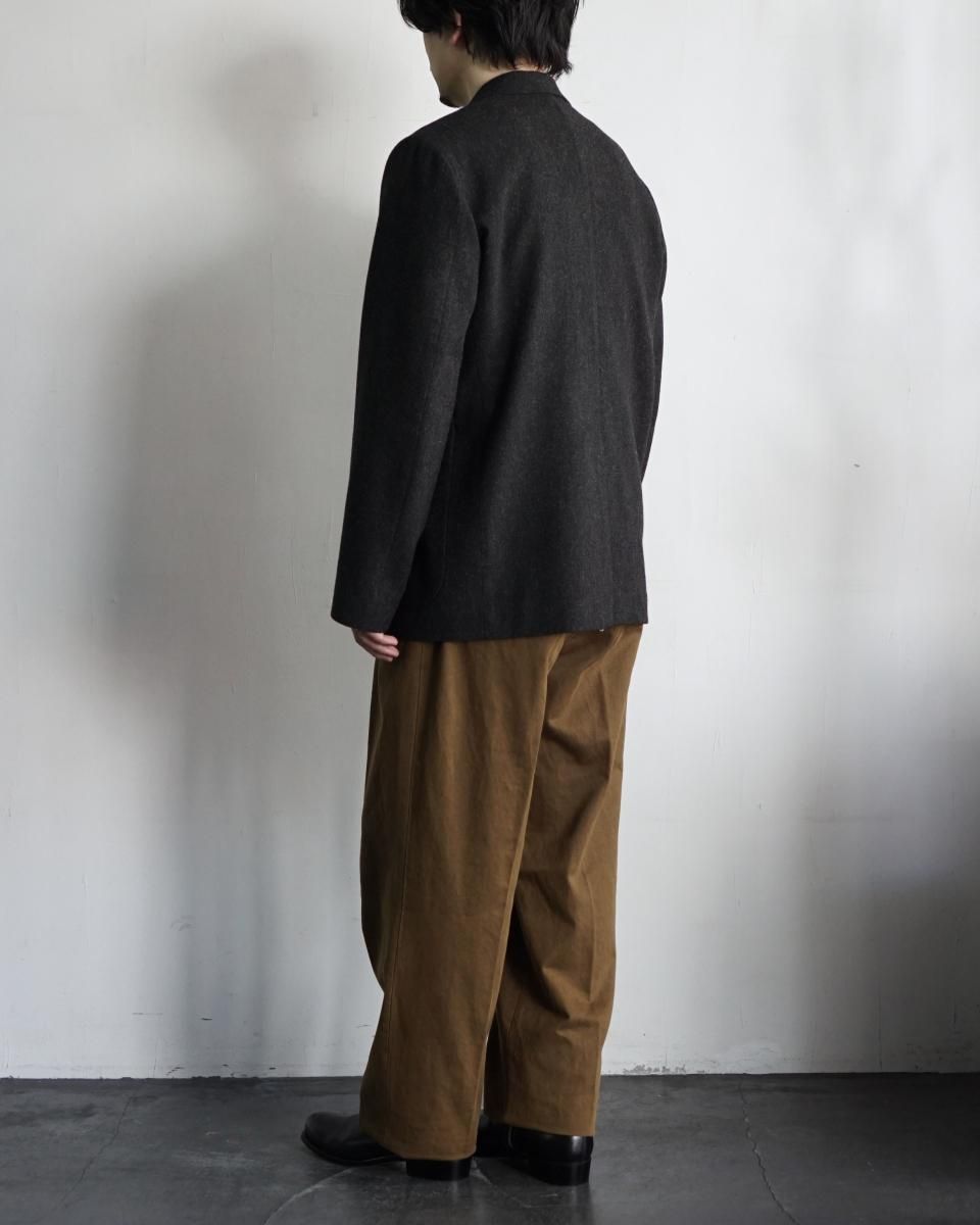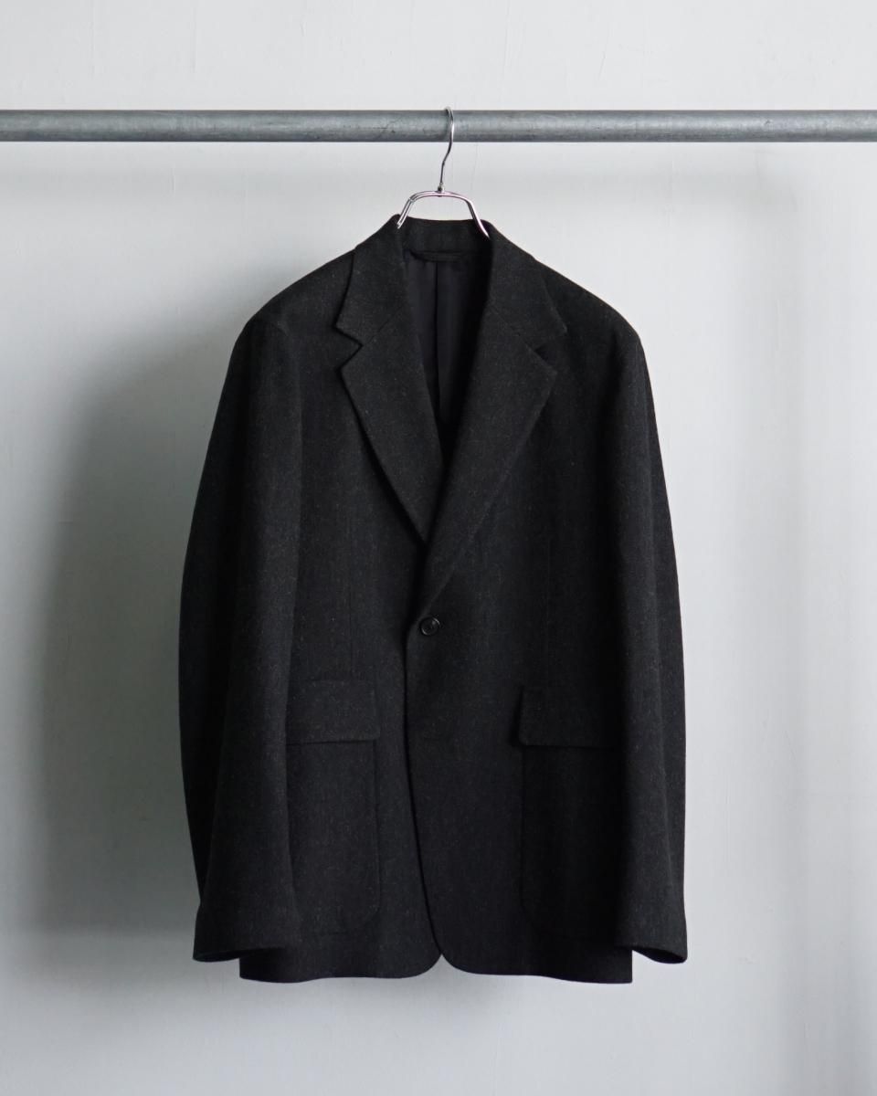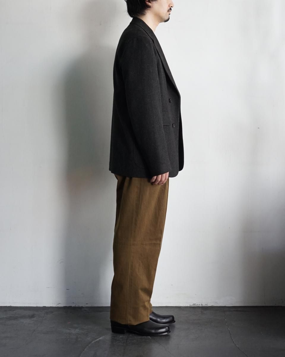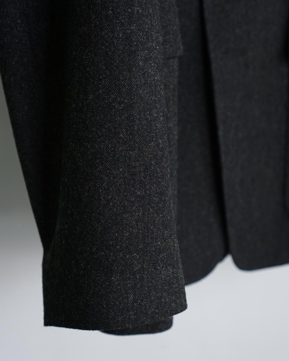 ・ツイードというよりもサキソニーとフラノの中間のような生地感になっており、見た目のウォーム感はありながら軽い着心地に仕上がっています。