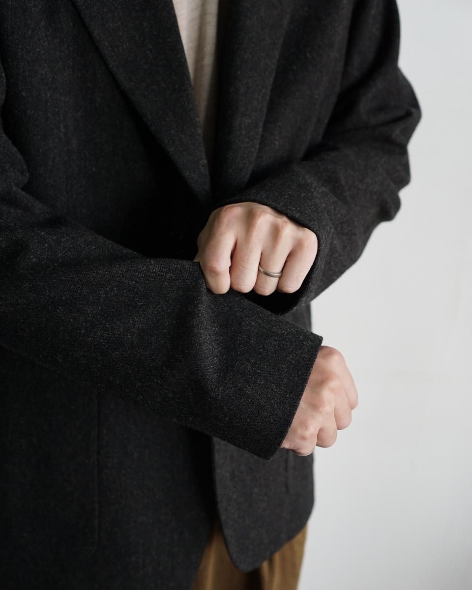 ・シングルながら深い前合わせのゆったりと羽織れる程よくボクシーなシルエットも上品でリラックス感を醸しています。