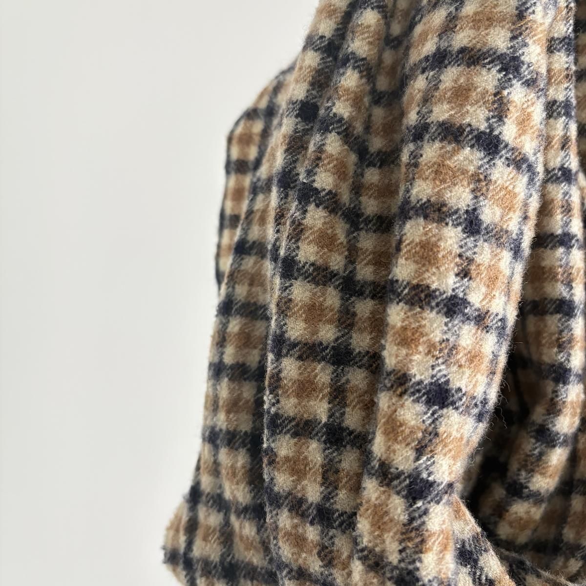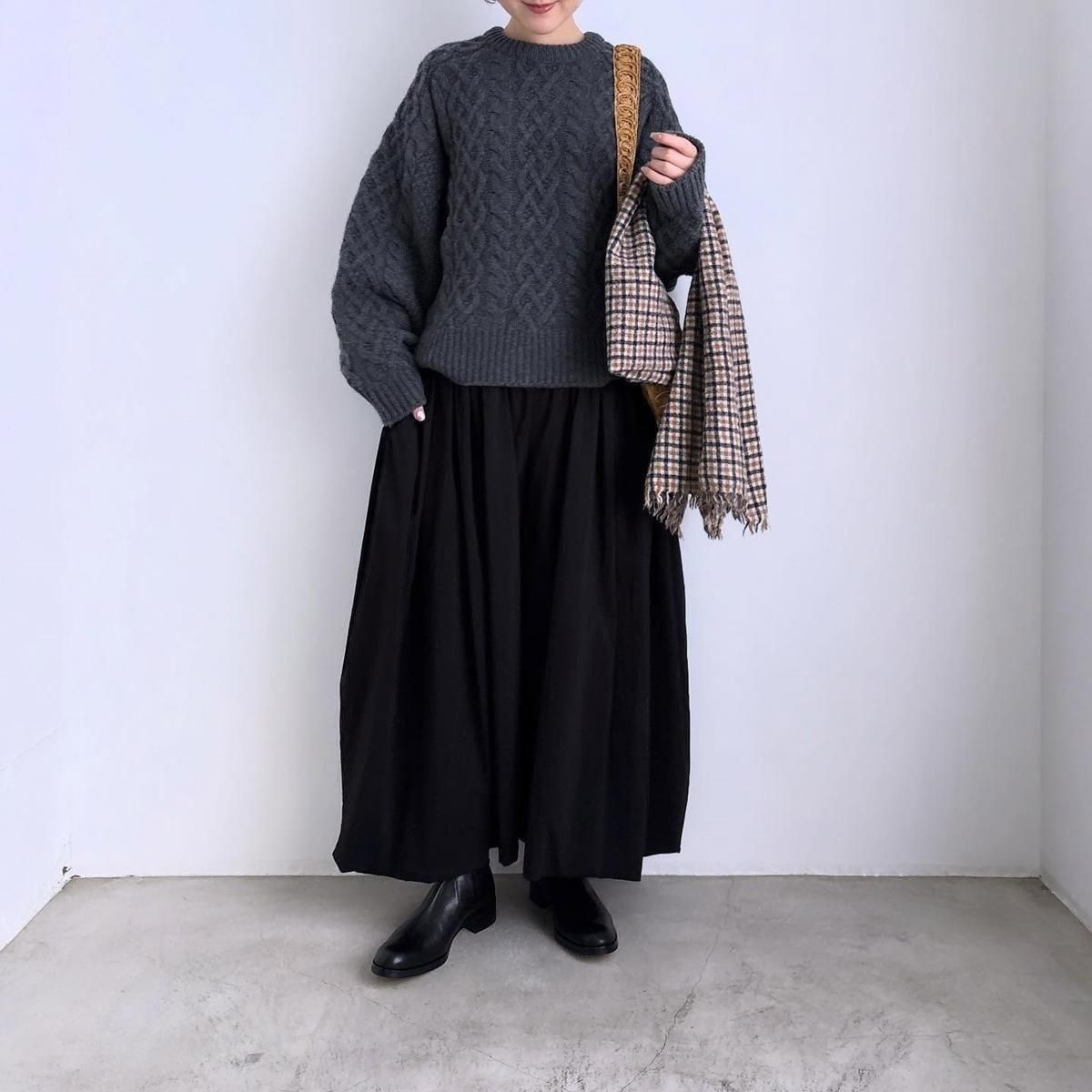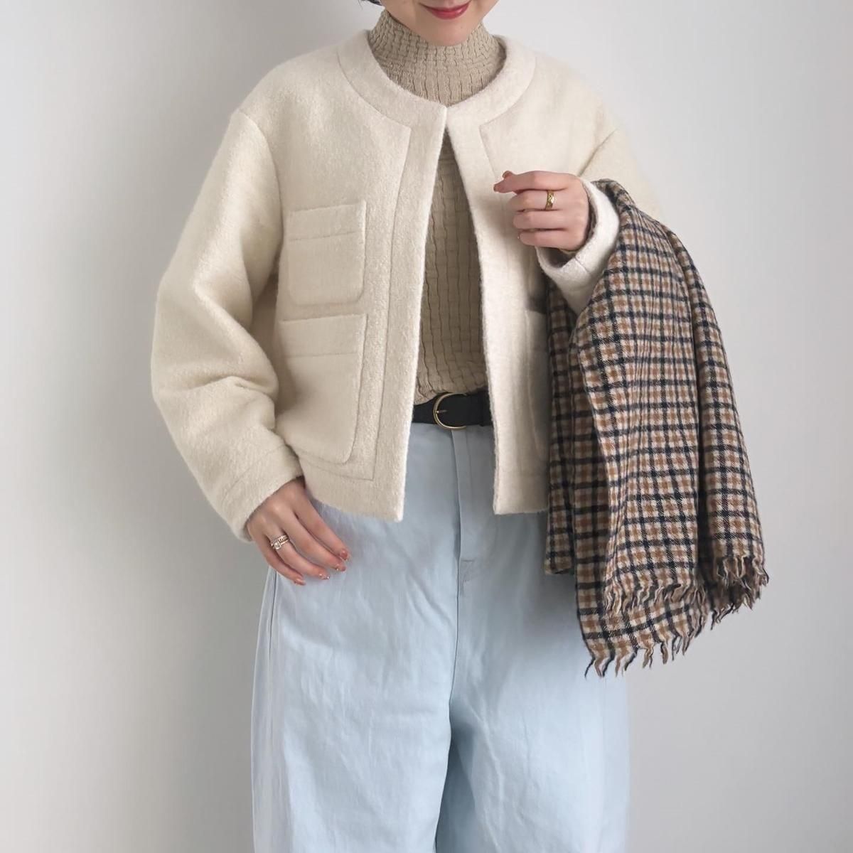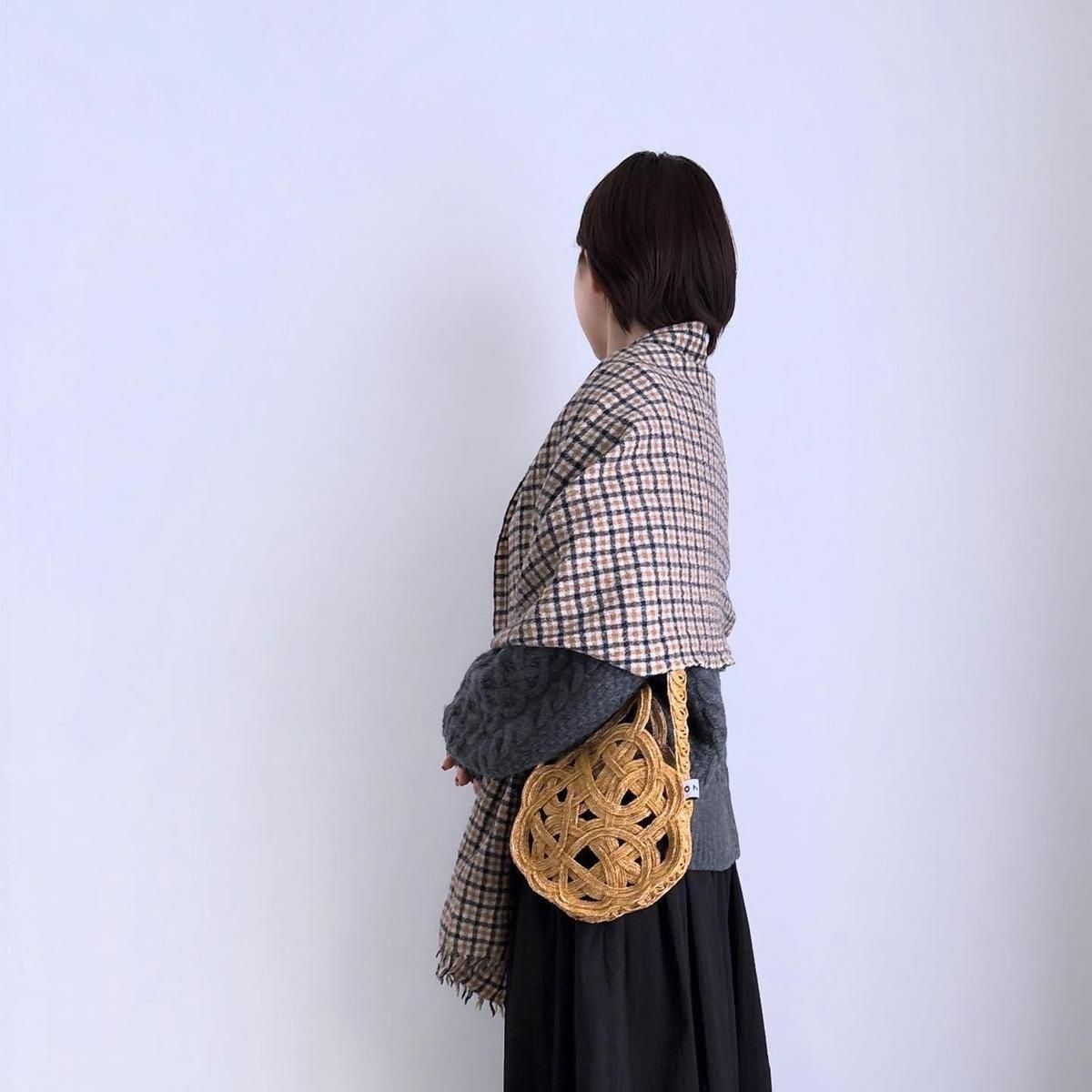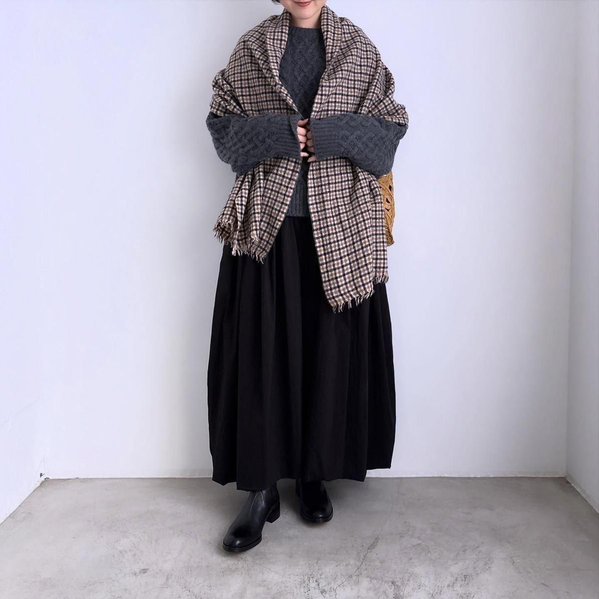 ショール風な巻き方から首にぐるっとまくにしても、おさまりが良く丁度良くまとまります。