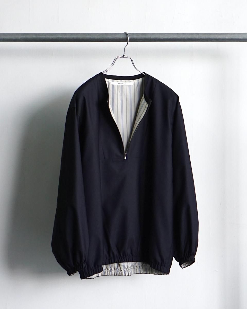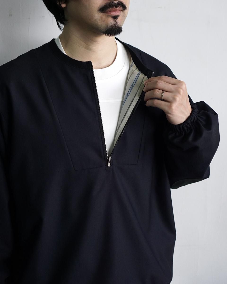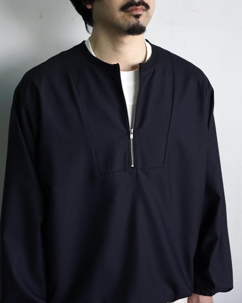 ・ハーフジップや袖裾にゴムの入ったスポーツウェアのようなデザインに上質な素材を使いモダンな雰囲気に仕上げたプルオーバーシャツ。