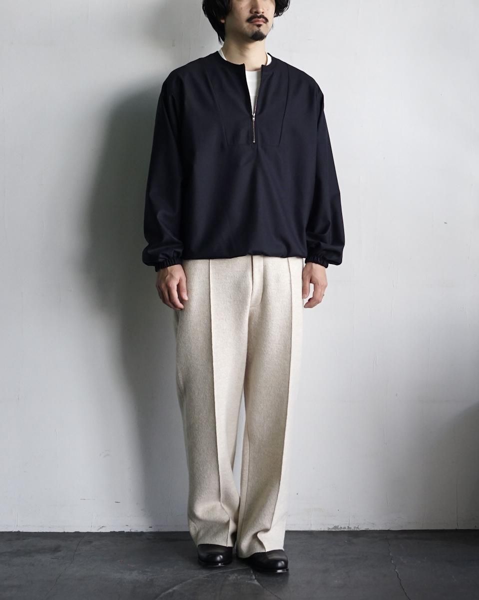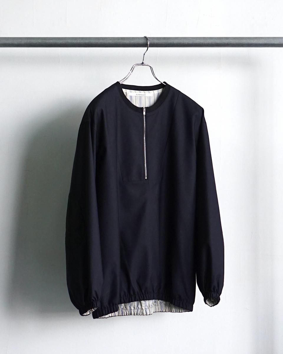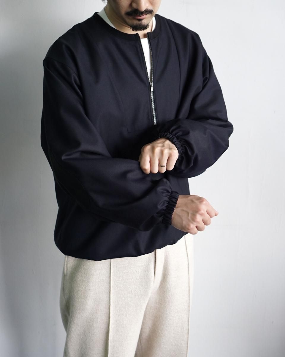 ・ハーフジップや袖裾にゴムの入ったスポーツウェアのようなデザインに上質な素材を使いモダンな雰囲気に仕上げたプルオーバーシャツ。