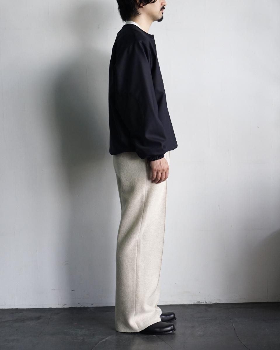 ・全体的に空気をはらんだような丸みを帯びたシルエットになっており、落ち感と艶ののある上質なSuper100’sウールの素材と相まって上品な色気と抜け感のある他にはないアイテムになっています。