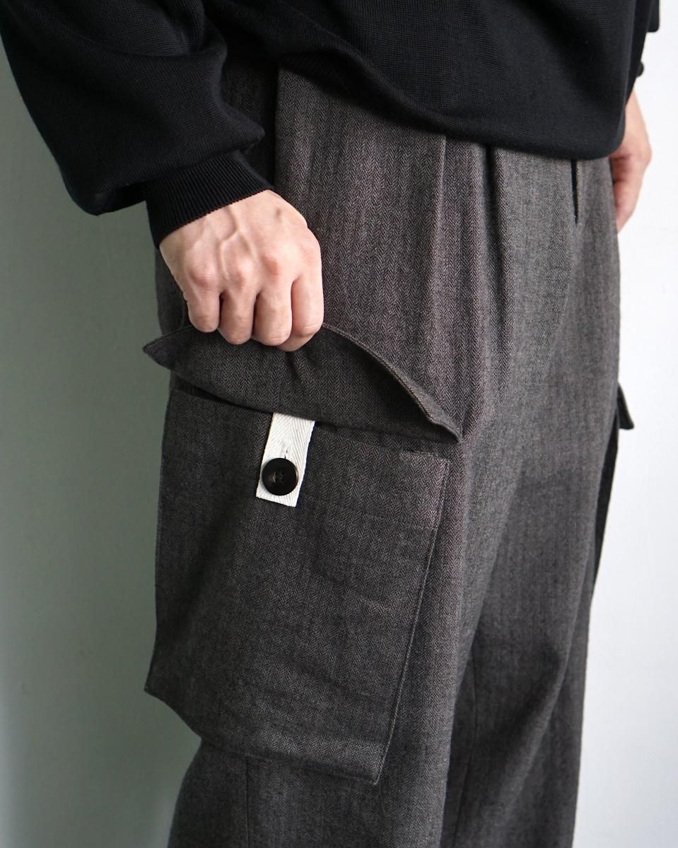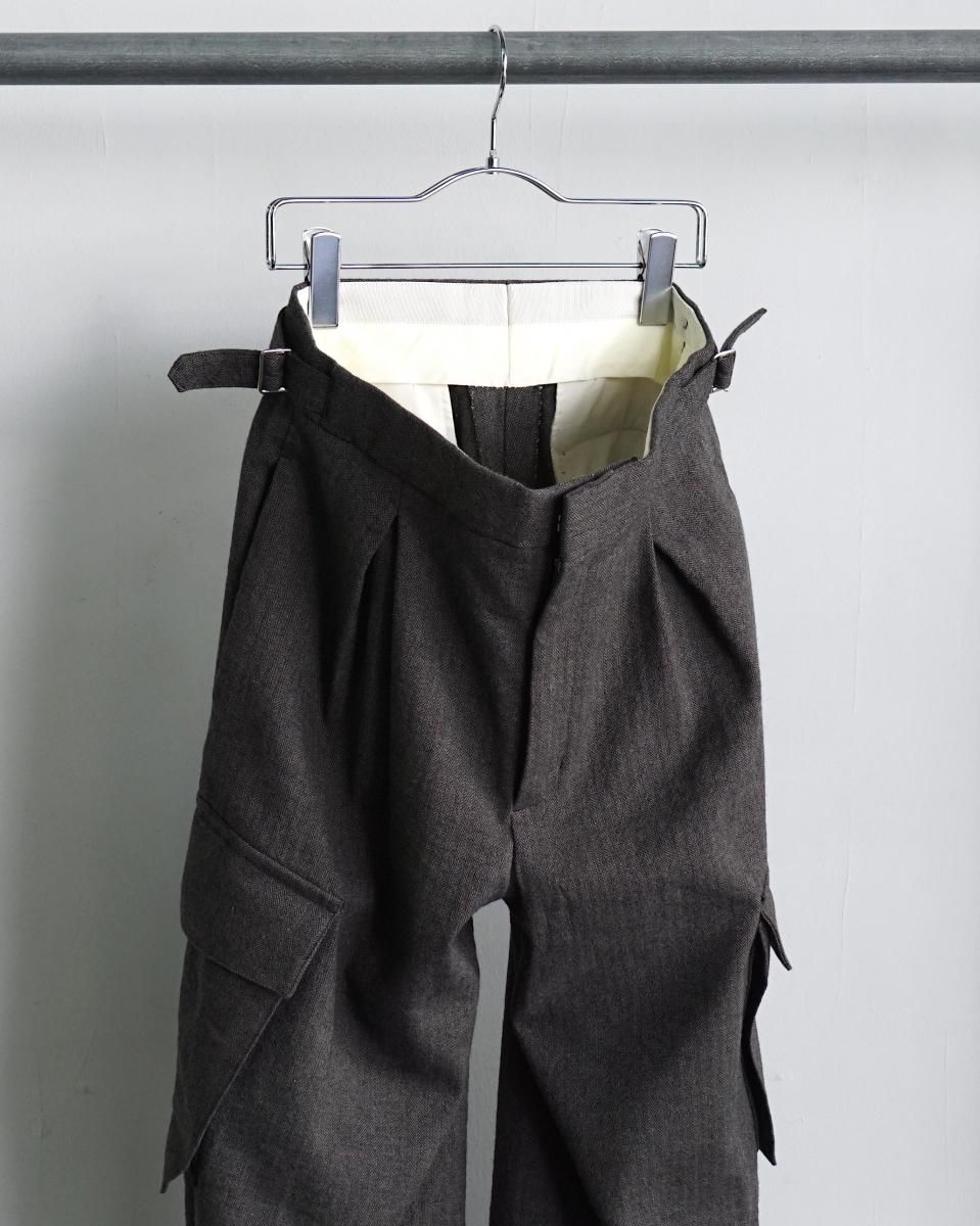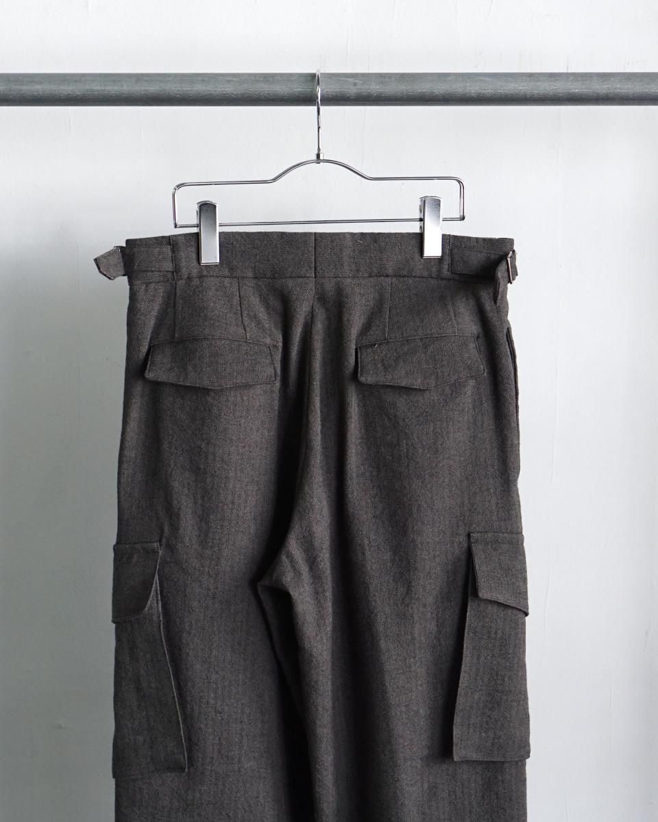 ・デザイナーが古い文献で見つけたディテールをベースに、研究と試行錯誤を経て辿り着いた新型のカーゴパンツ。