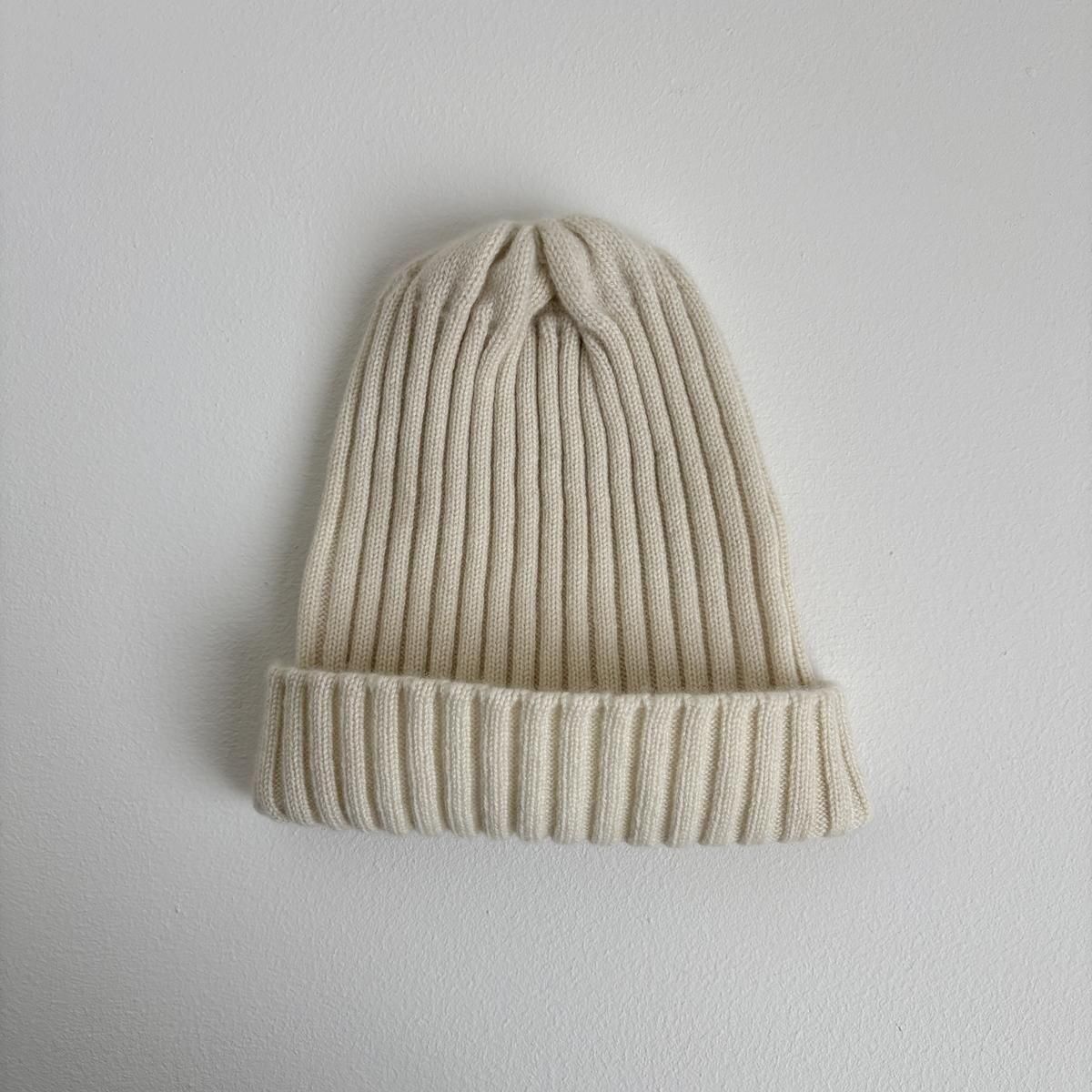 シンプルなリブ編みのビーニータイプ